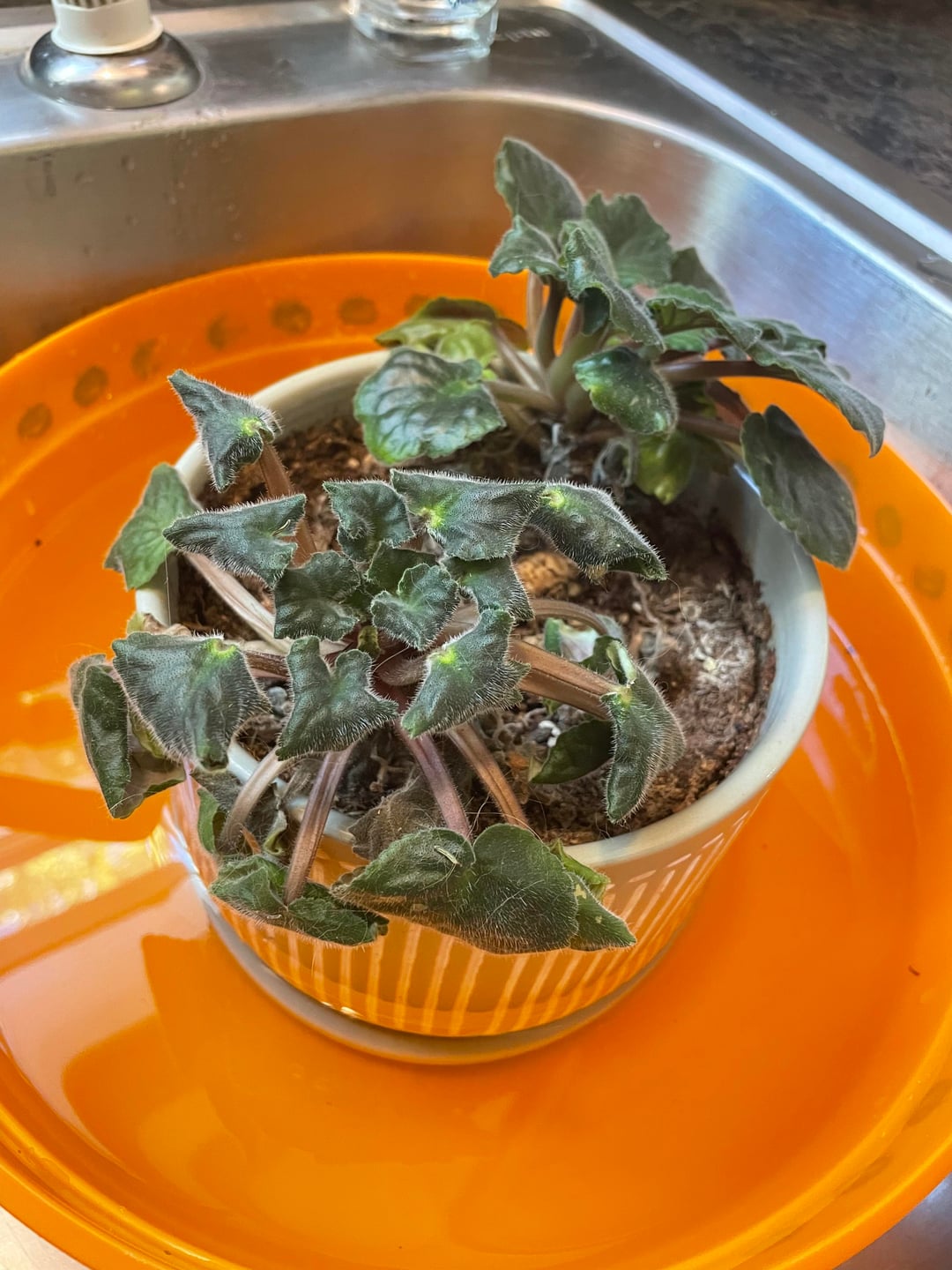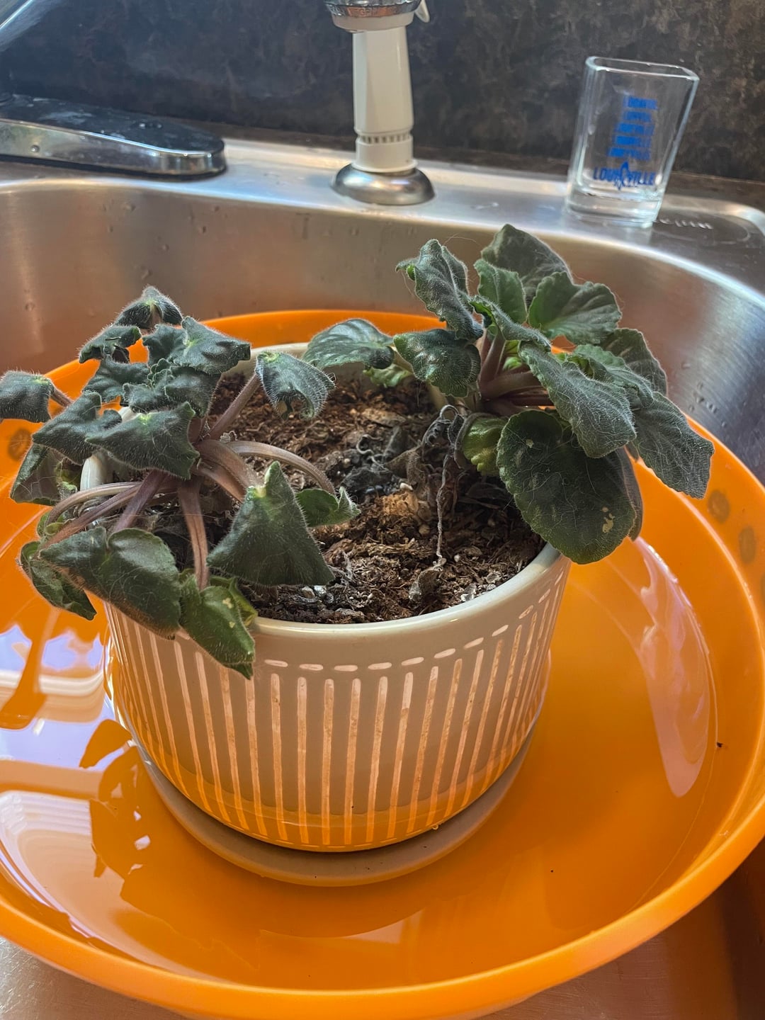 This was my grams and I can’t seem to help it. I was told they like water from the bottom. That’s why it’s in the big orange bowl. What can I do to help it?