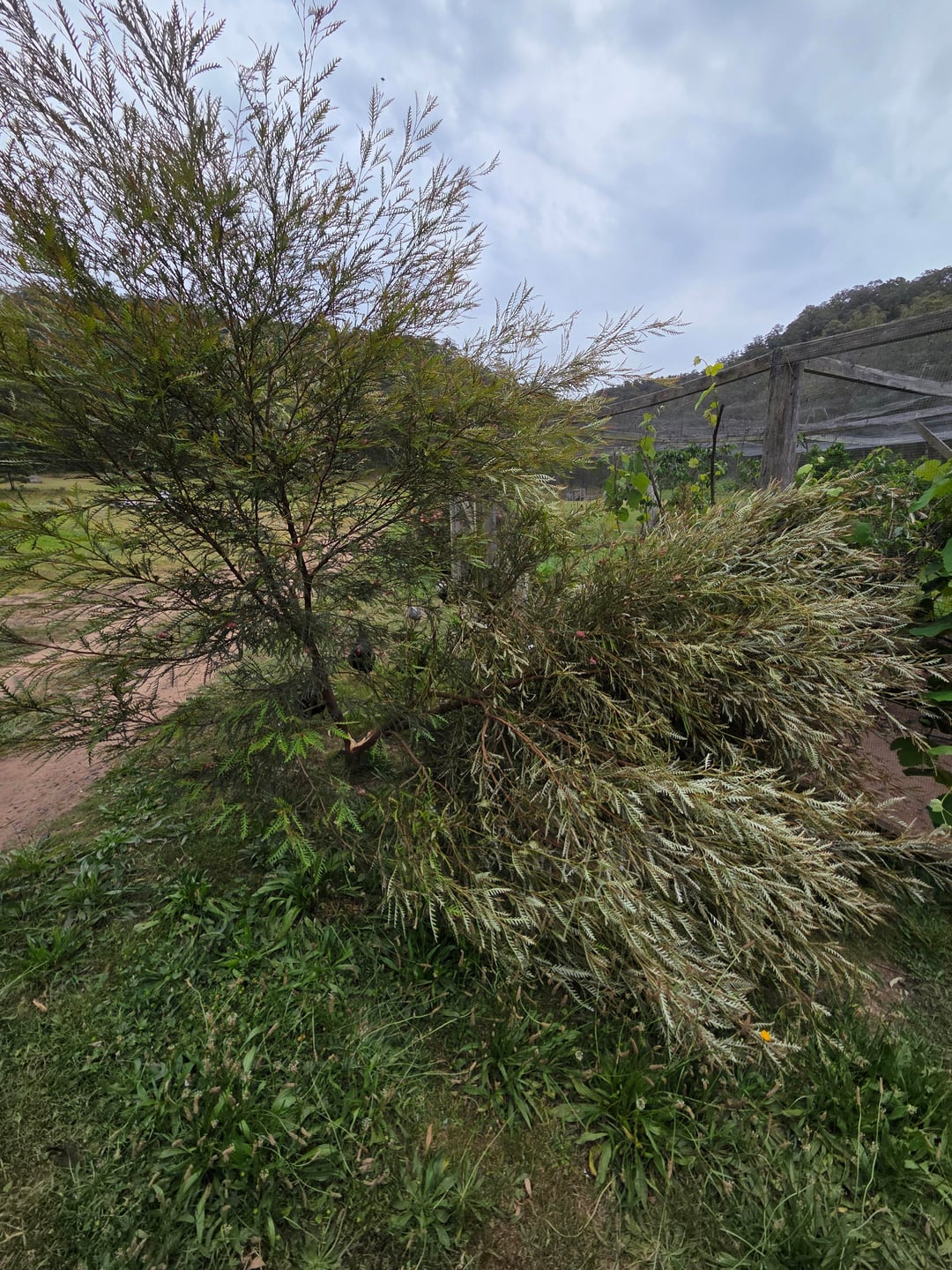 Had some next level strong winds that tore this tree in half. Can I pull it back together and rope it back up? Will it have any chance of binding or do I just cut off the broken half and hope for the best?