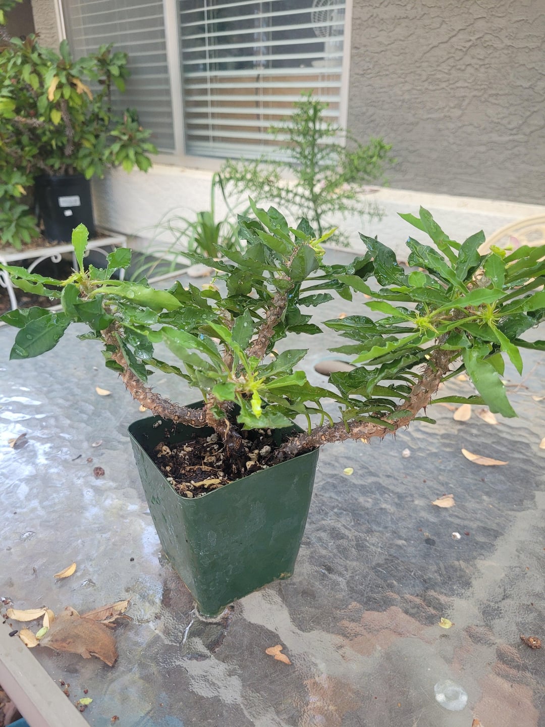 I purchased this at a plant sale yesterday. The seller said it was a hybrid crown of thorns, but it looks closer to Euphorbia dercaryi. Any thoughts? by darknesswater EuphorbiaceaeSucculent Varieties Comments are closed.