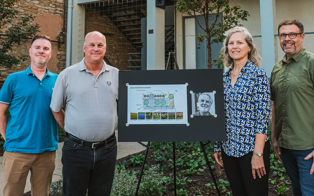 Contributed photo Brigid Murphy (center) attends a private reception on Oct. 8, 2025 for a garden at Multistudio, 706 Massachusetts St., dedicated to her late husband, Jackson Clark.