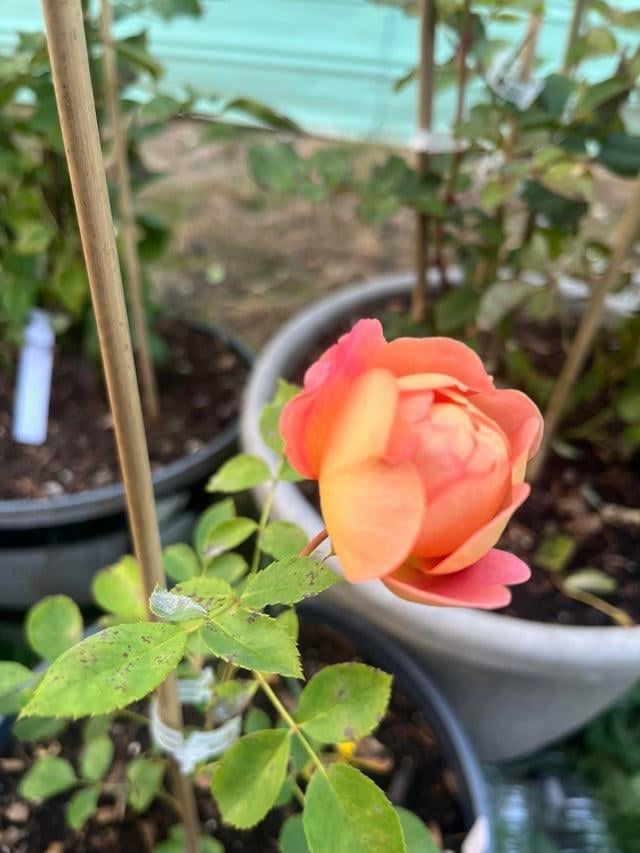 Lady Of Shalott is highly appreciated by rose lovers and is considered one of the best David Austin roses for its remarkable flowering and resistance to diseases. Its young buds, of a vibrant orange-red color, open to form chalice-shaped flowers, which fill the loose salmon pink petals from the outside with a golden yellow reverse. The flowers give off a delicious hot tea fragrance with touches of spiced apple and cloves. Lady of Shalott quickly forms a large, leafy shrub with slightly arched stems and medium green foliage that have attractive, slightly tanned tones when young. It is an essential plant in the flower garden