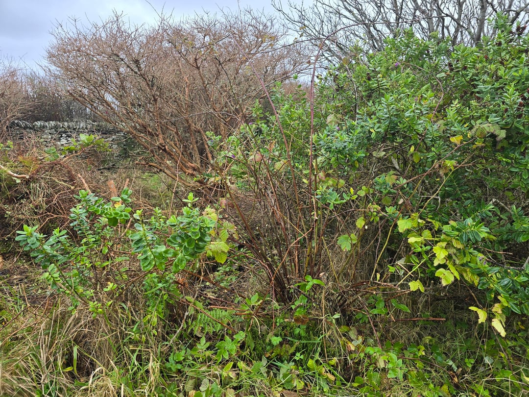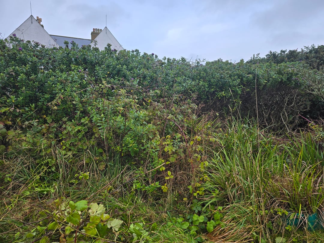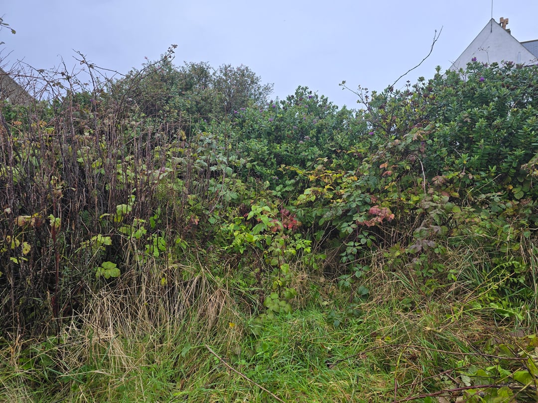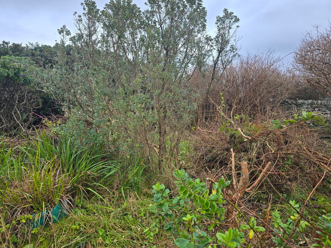 We have a walled garden that is severely overgrown. This is the north west corner. I have already cleared the other sections a bit just so there is access. This is the worst bit that I wasn't able to get to before.
