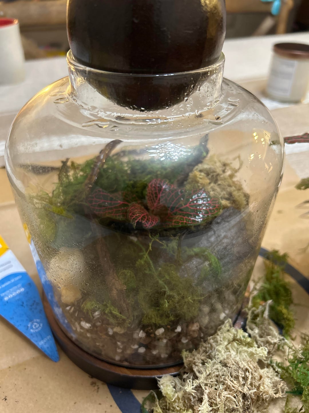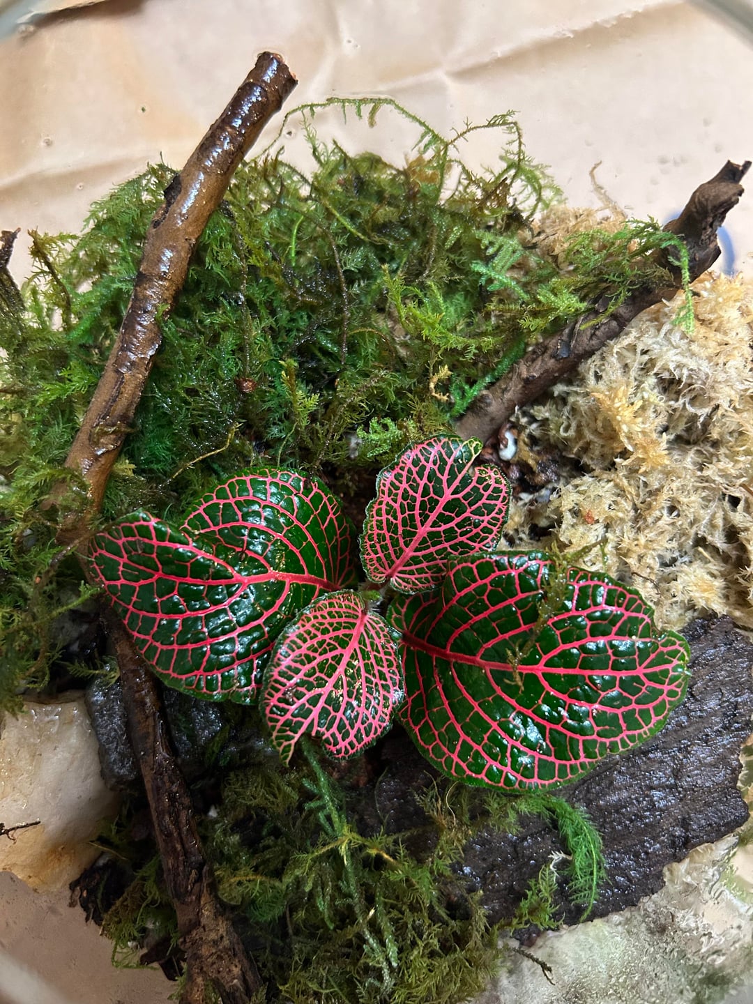 Hi! I’ve wanted to make a terrarium for a long time and finally did. Does this seem about right? I’m worried about the gold moss and if it is dead. Also, will the moss attach itself or do I need to do something? by FROSTY_KOR Horticulture Terrariums 1 Comment Difficult_Insect_340 4 hours ago Mine here but I think the moss will attach its self, looks good