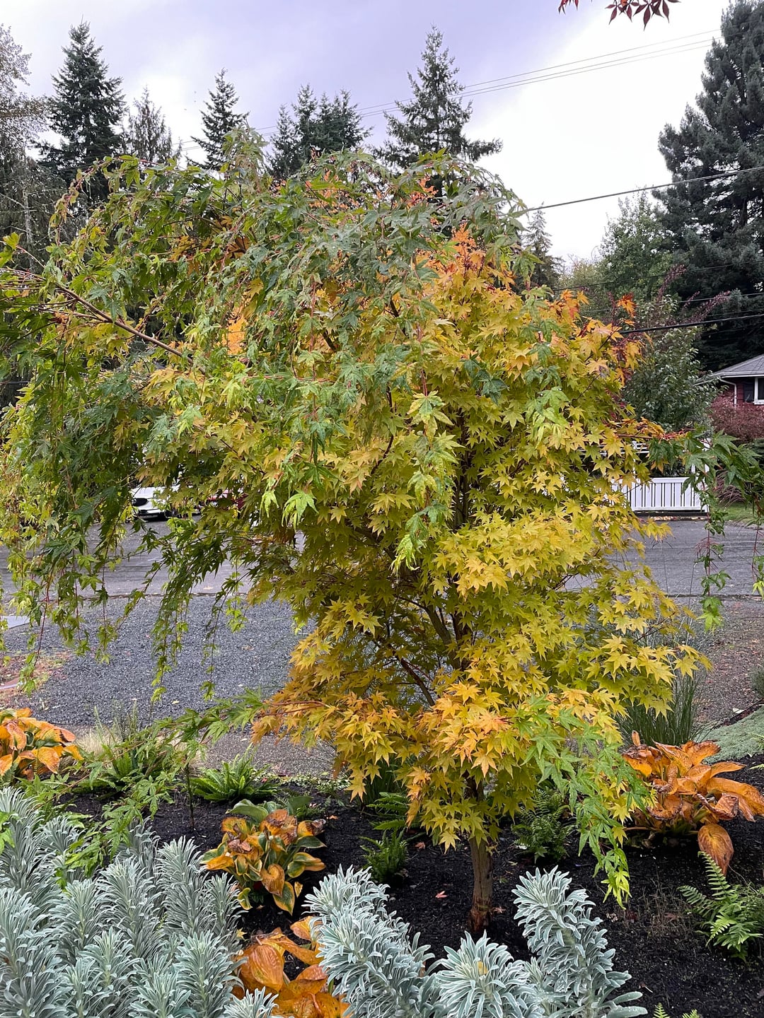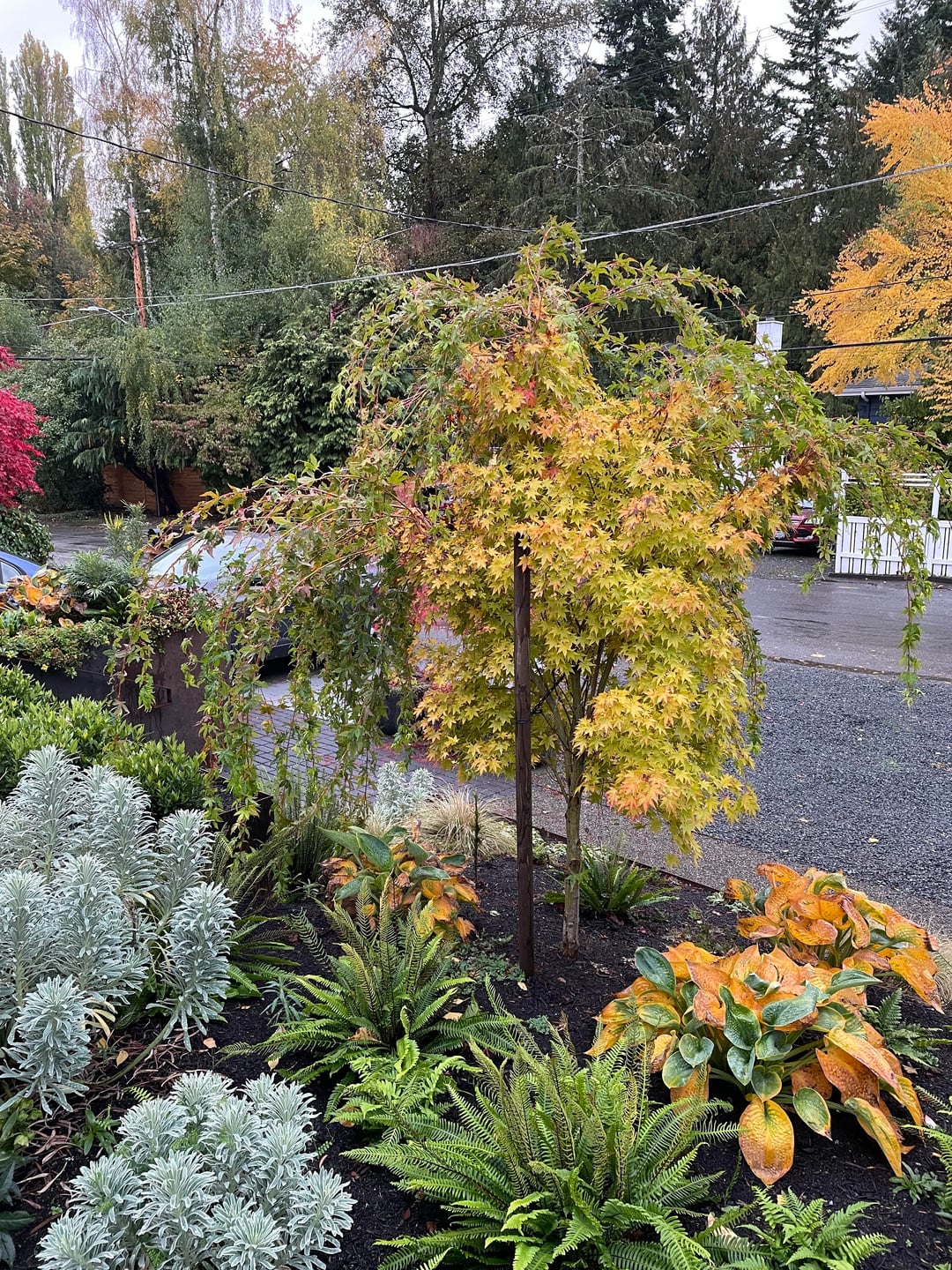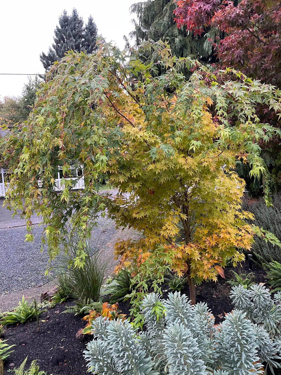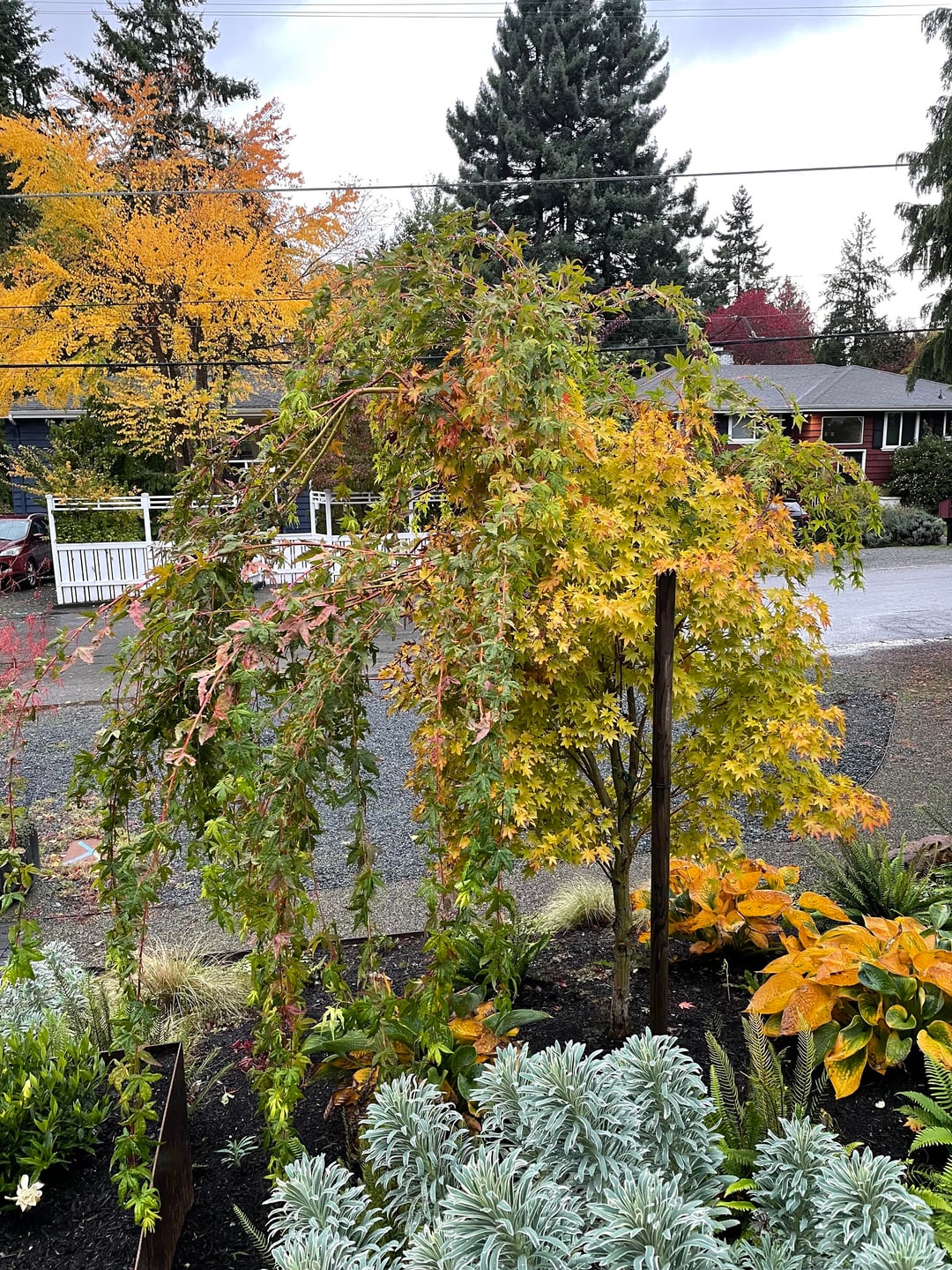 These two maples got a bunch of kind of wild new growth toward the end of summer. I think it looks kind of unusual the way it’s so much longer than the older growth. The newer branches are staying green longer, while the older leaves are starting to turn yellow. They are also reaching more heavily toward the south.