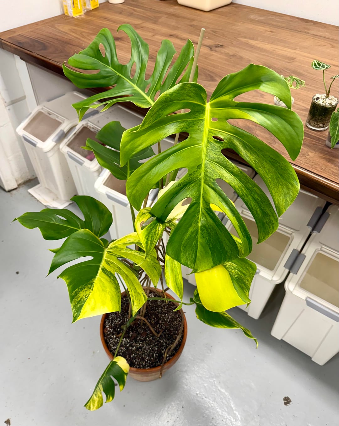 Drove 2 hours for a marketplace deal and ended up meeting such a sweet plant person who just kept trying to give me more plants ๐ I drove there for this gorgeous aurea and a baby queen anthurium for $140, left with those plus a monstera adansonii mint, an anthurium crystallinum, an albo syngonium, and two monstera albo cuttings for a grand total of $190. These are the deals I live for.