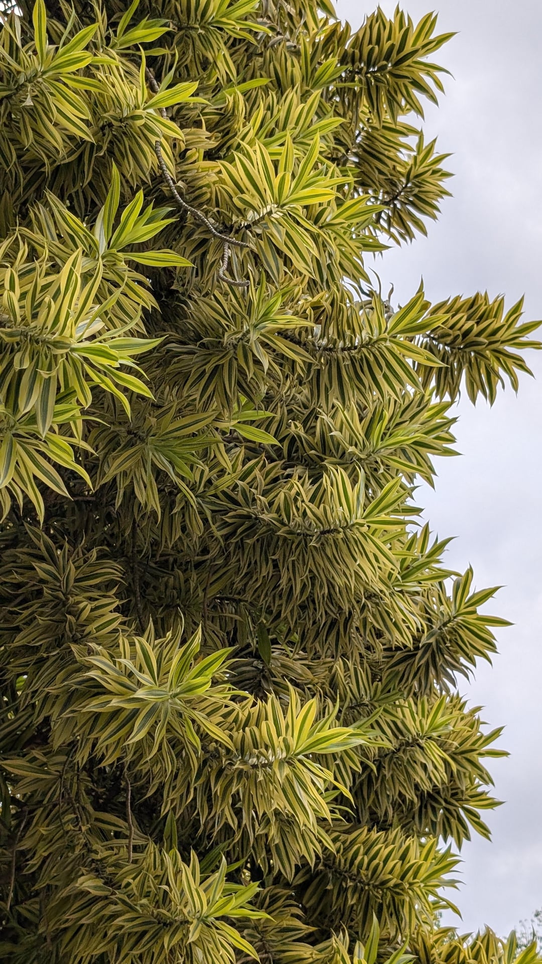 What sort of tree is this? In Singapore and about 4 meters high. by CaravelClerihew plants IdentificationWhat's this plant 1 Comment portemanteau 2 days ago *Dracaena reflexa* ‘Song Of India’