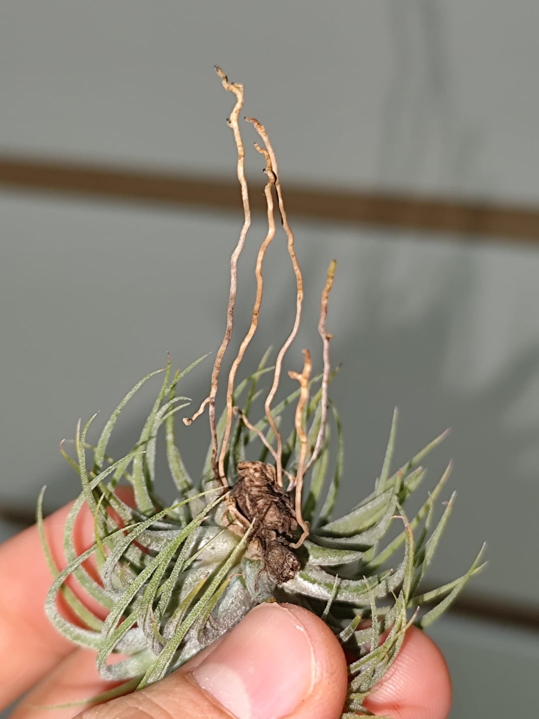 2) deep soaked with diluted liquid bromeliad fertilizer specialized for tillandsia 1 hour once a month.