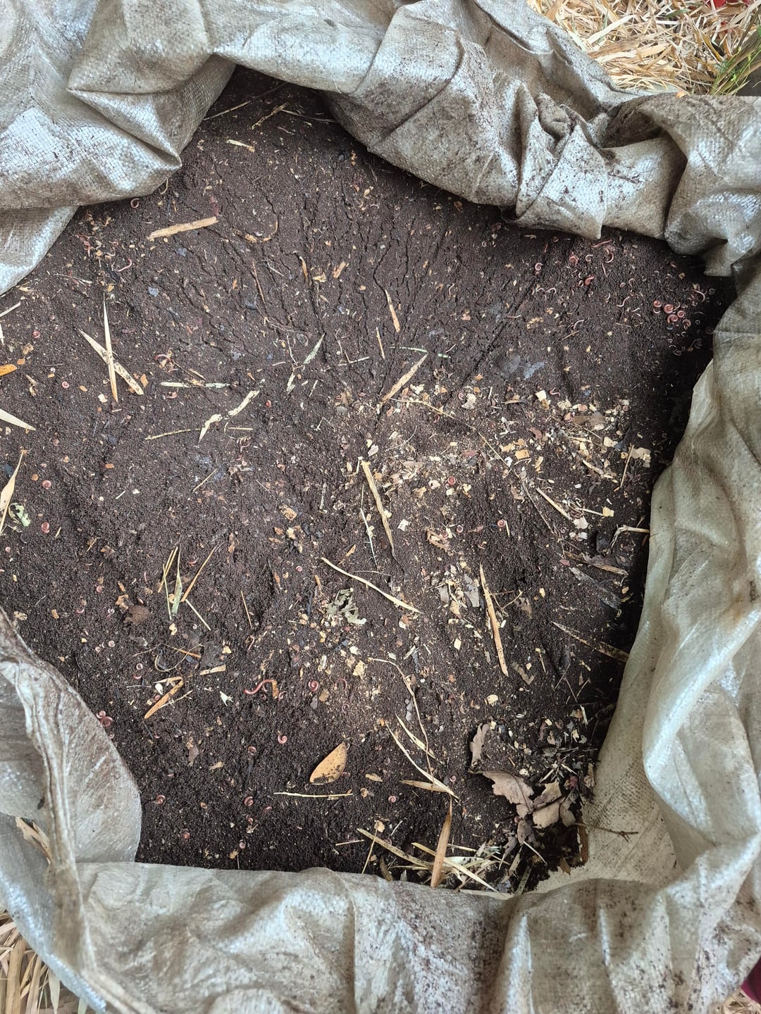 I started with 2 big bags of wood chips, mixed in some fresh leaves and em4 solution. Then I added the millipedes and sealed the bag, never turn it, just adding some water occasionally.