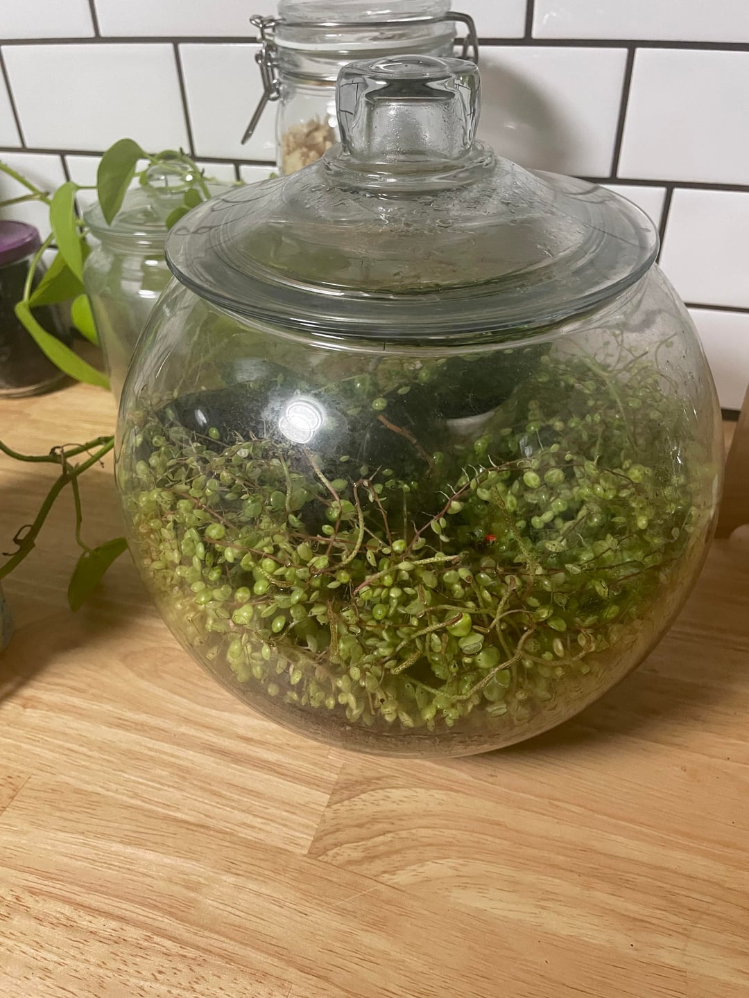 Ive kinda did this but not fully, I just have a Coleman glass lattern cover setting over my small 3.5in pot and its grown sooooo much. I finally feel like I have their preferred care routine down better. I want to get a larger bowl and transfer it so one day it will start to drape out the glass bowl. I want one of the large bowl that sits more on an angle so the opening is towards the side to be able to accomplish this one day in the future of my Turtles haha
