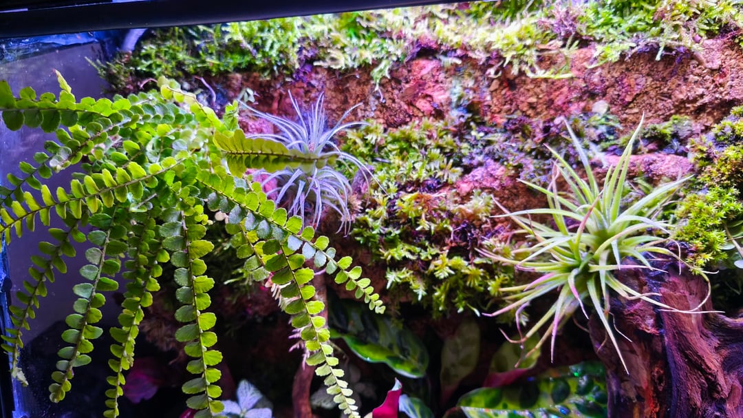 I build my first terrarium using this änkebar greenhouse from IKEA. I seal everything and im using a cork background.