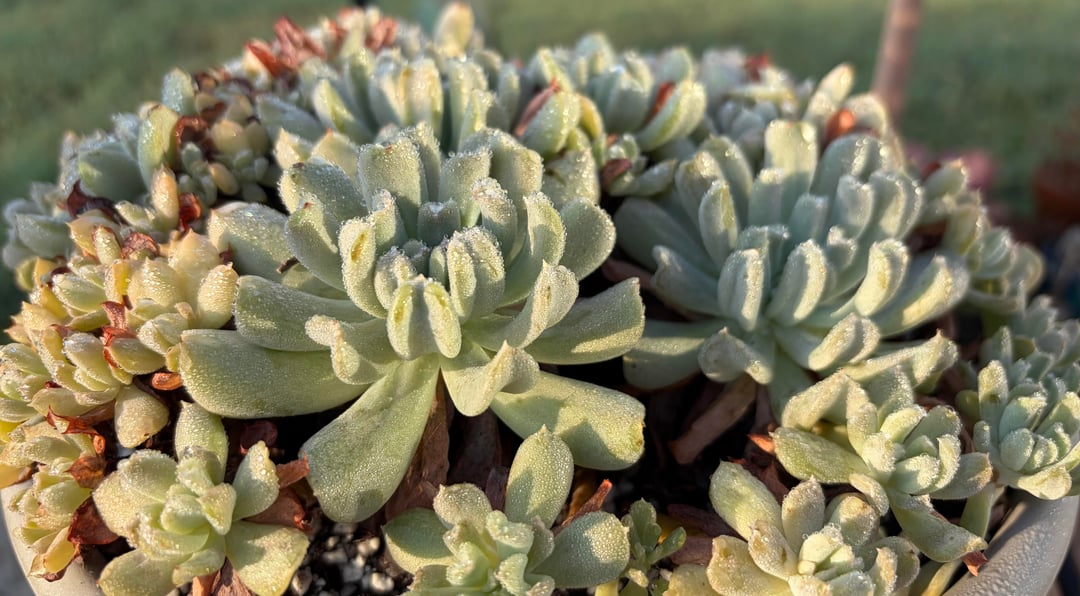 Dew dropped succulents in the morning sun by TheLittleKicks Fat Plantssucculent plantssucculents 6 Comments TheLittleKicks 2 days ago Sedum pachyphyllum Graptopetalum pachyphyllum Crassula rupestris Albuca spiralis Mangave ‘moonglow’ Graptopetalum ‘purple delight’ Echeveria topsy turvy Kcarcuss 2 days ago They are like a frozen treat & I want them all! 😋 Naked_Hippie_420 2 days ago Happy for you but super jealous. 😍😍🤩🤩 Hopeful_Group7684 2 days ago What amazing, beautiful photos. In which region are these succulents located? Hime-chwan 2 days ago I also love these! I take night shots https://preview.redd.it/6oui4mjhjoxf1.jpeg?width=4624&format=pjpg&auto=webp&s=9120d773ef4f4f65573958d1006a3e002f62380b passwd123456 2 days ago They’re all great but I always love to see your Blue Beans!