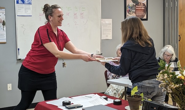 Master Gardener coordinator Katie Oakes hands out certificates of completion to students in the 2024 Training class.