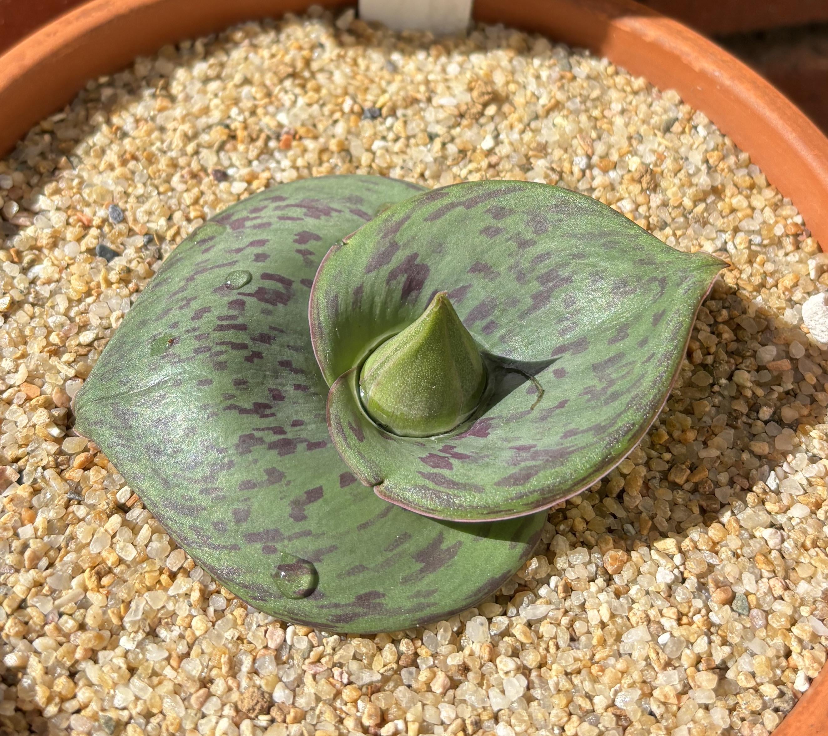 Massonia depressa coming along nicely. This will grow quite a bit larger and won’t bloom for 2-3 more months.