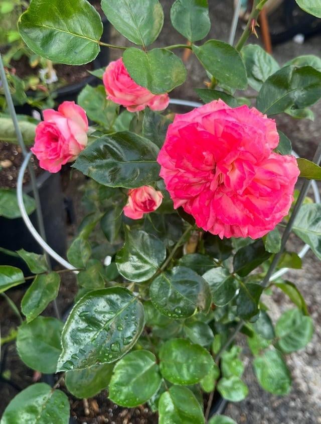 Antique impresses like a rose of continuous flowering that stands imposingly in the center of any garden. It has a moderate fragrance. Its dark green foliage contrasts markedly with the creamy pink flowers, with vibrant pink edges. It is an excellent climber, but it can also be grown as a bush with support. Antique would be perfect for a north-facing wall, since it tolerates mottled shadow well.
