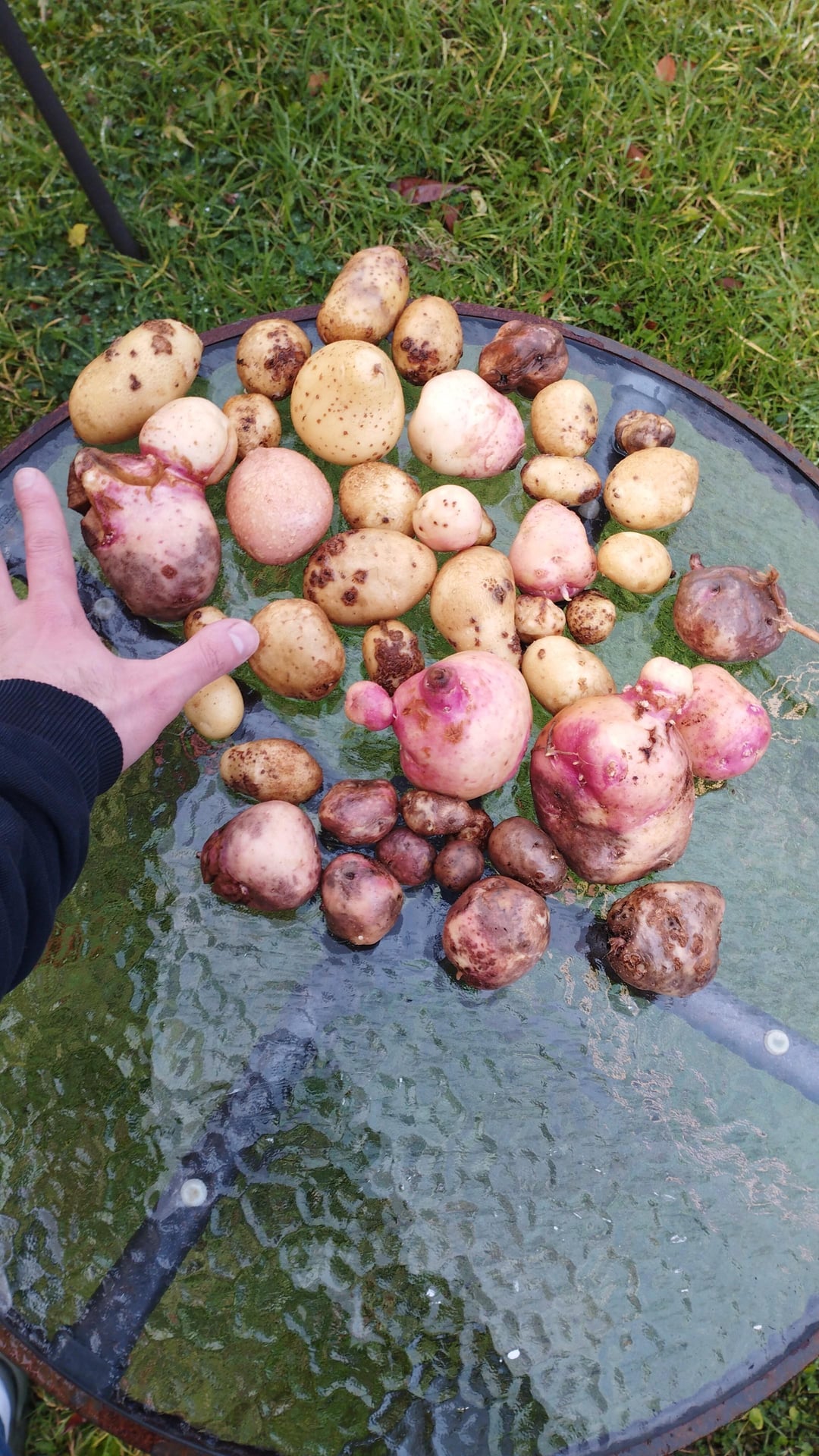 Realized this compost bin last year, dig out the compost recently but not the best results, some part was really smelly some not composted at all (especially the bottom layers was having this problem). The compost was done with no mixing so i was thinking to improve the pot adding a pole with some blade to mix it and sometime turn it. Last photo are my compost potato, some of them is bad, overall nice and come with no effort.