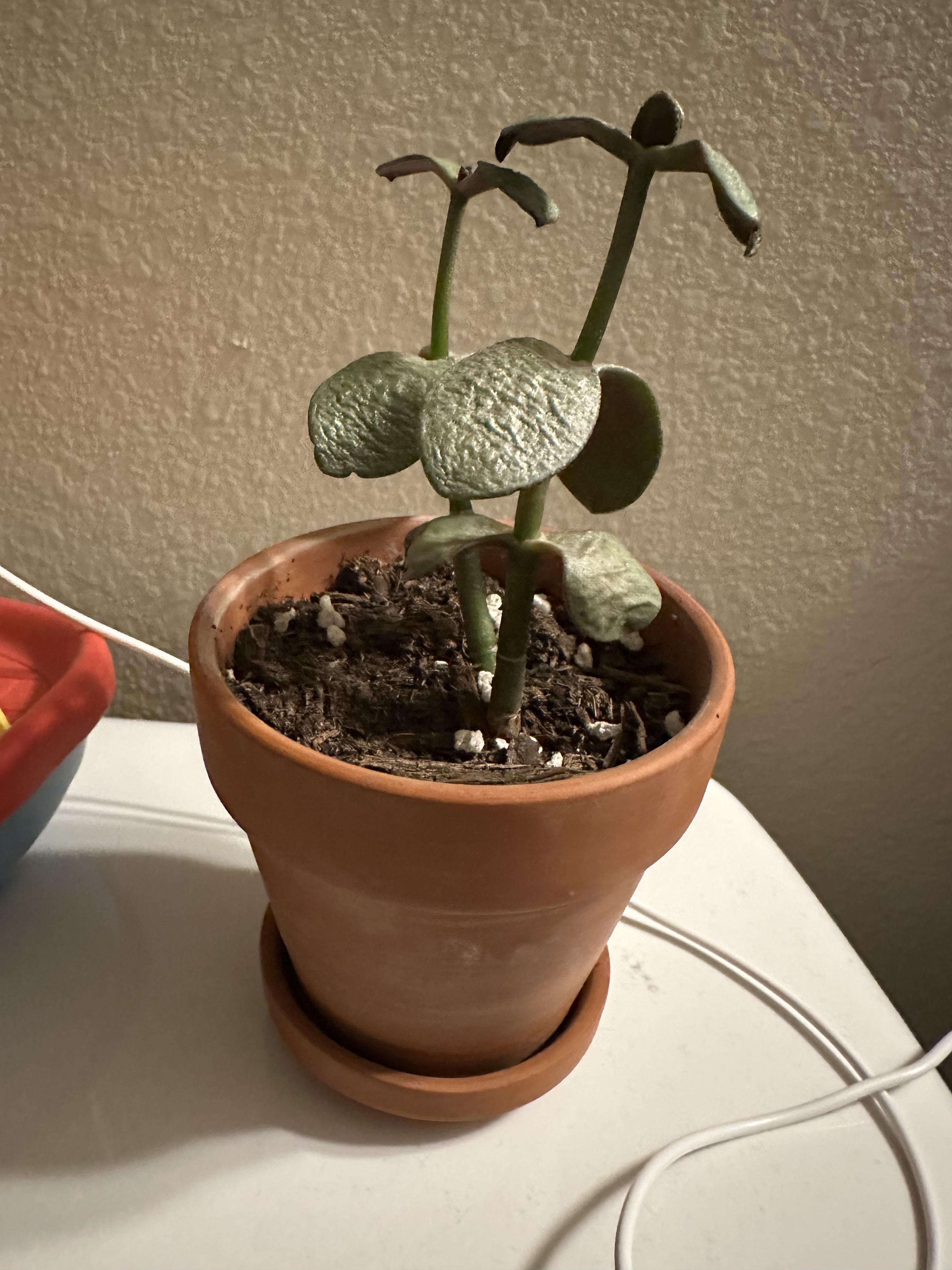 Jade plant is the correct ID! Shes thirsty as heck, OP! They’re beautiful, awesome looking plants!