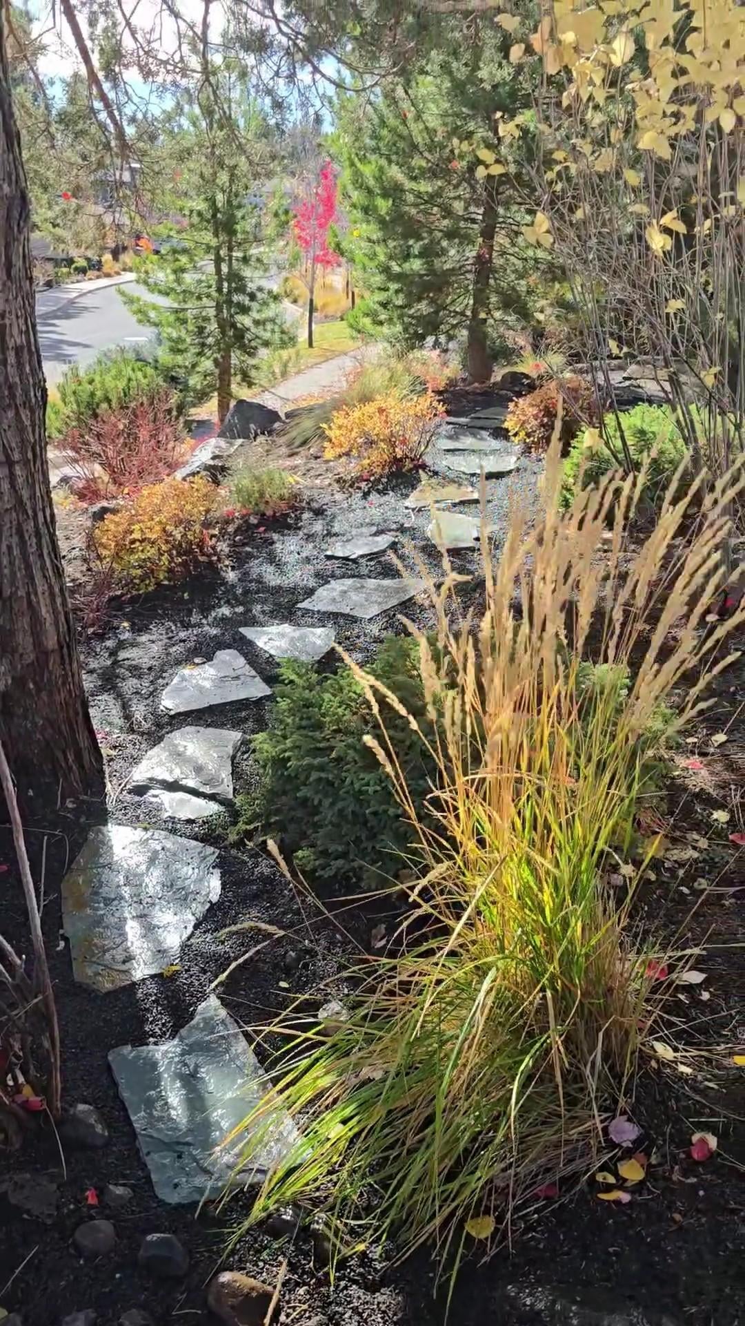I would charge a couple grand for something like this (depending on how much prep work), but I would space the flagstone a lot closer (about 3″ gaps), and wouldn’t go right next to tree. I use smaller pieces also and concrete them in.