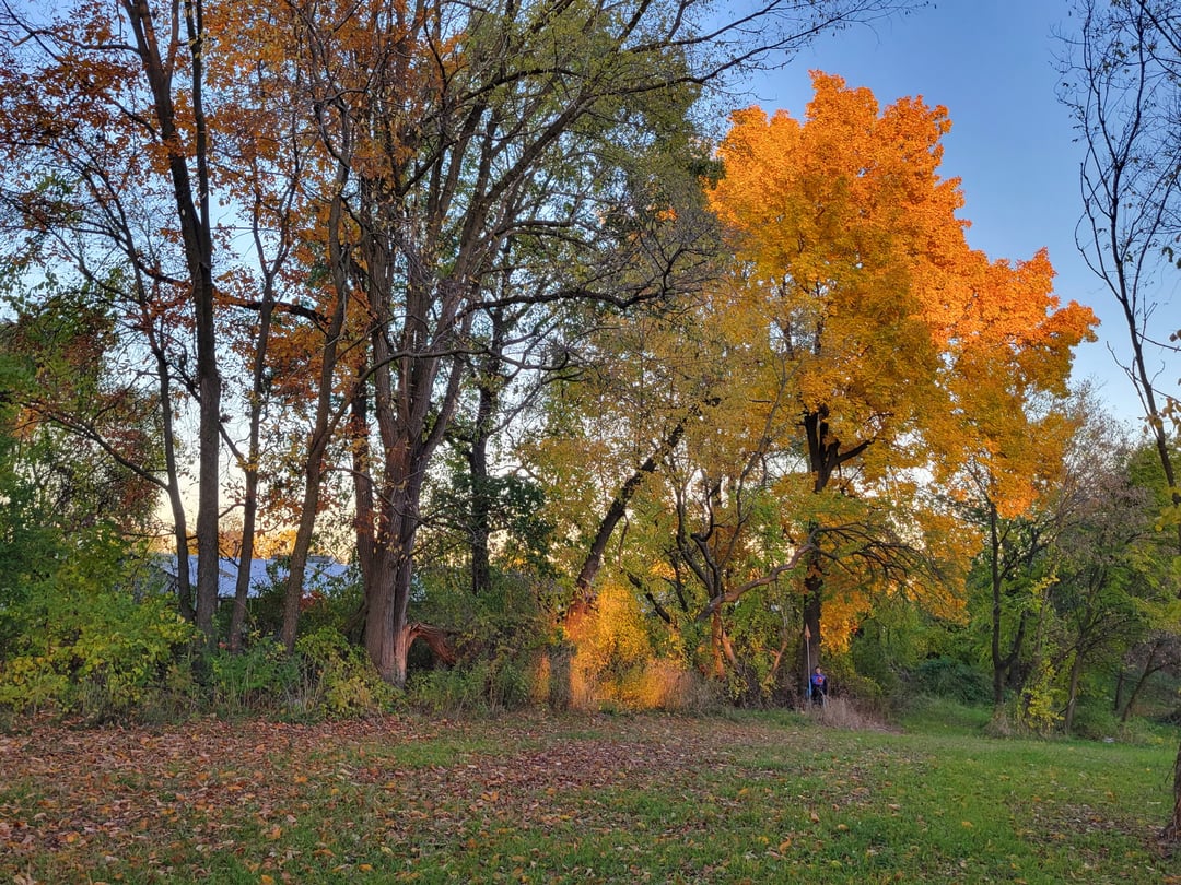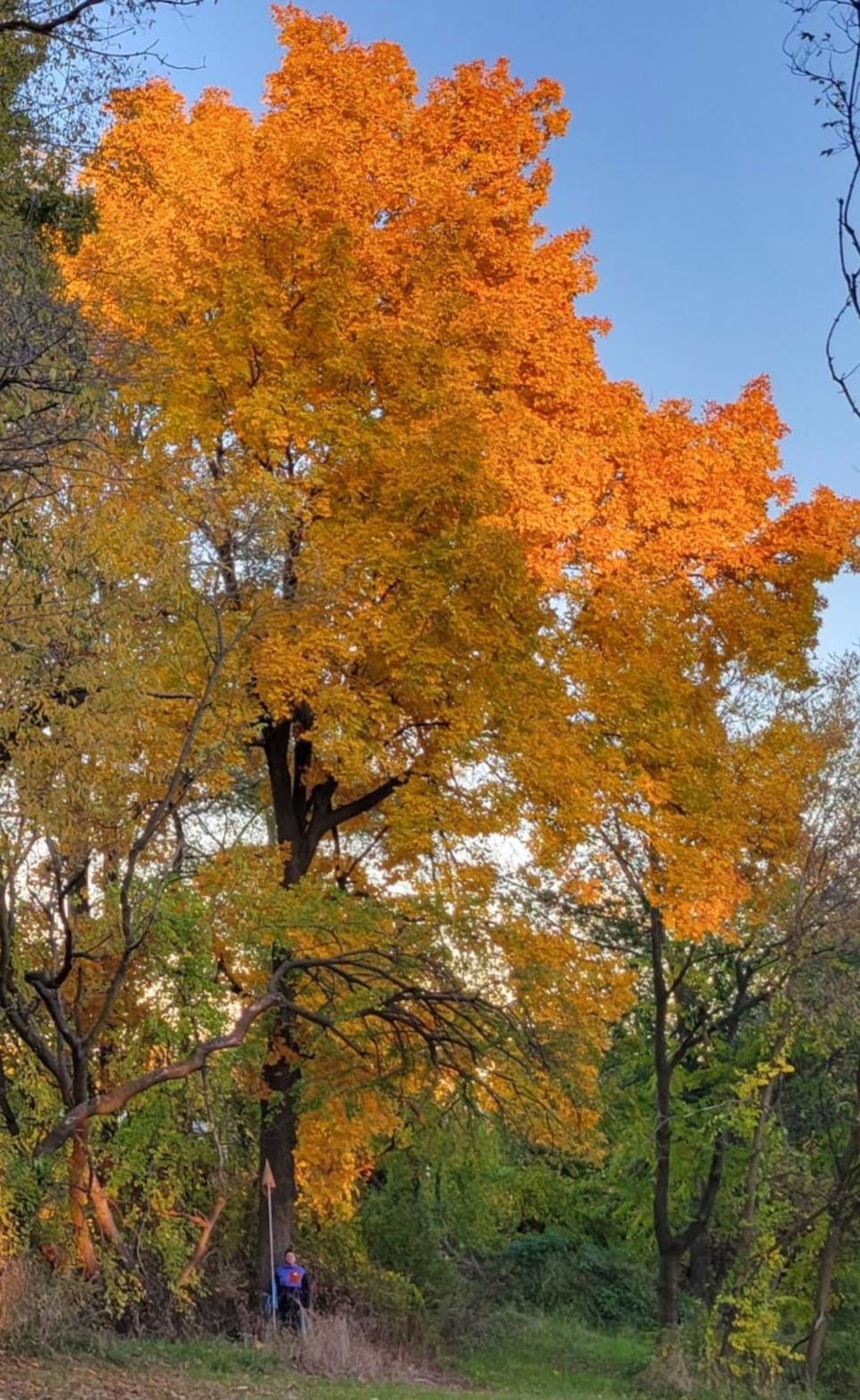 This is a ~120ft Bitternut (or maybe hybrid) hickory tree that sits at the back of our property here in the Great Lakes area. It is on the edge of a railroad track that was cleared in 1888, and could be 150'ish years old. It has had a good year dropping nuts, and an even better year for fall color. It started turning color later than many area hickories, and is nearly a neon yellow now.