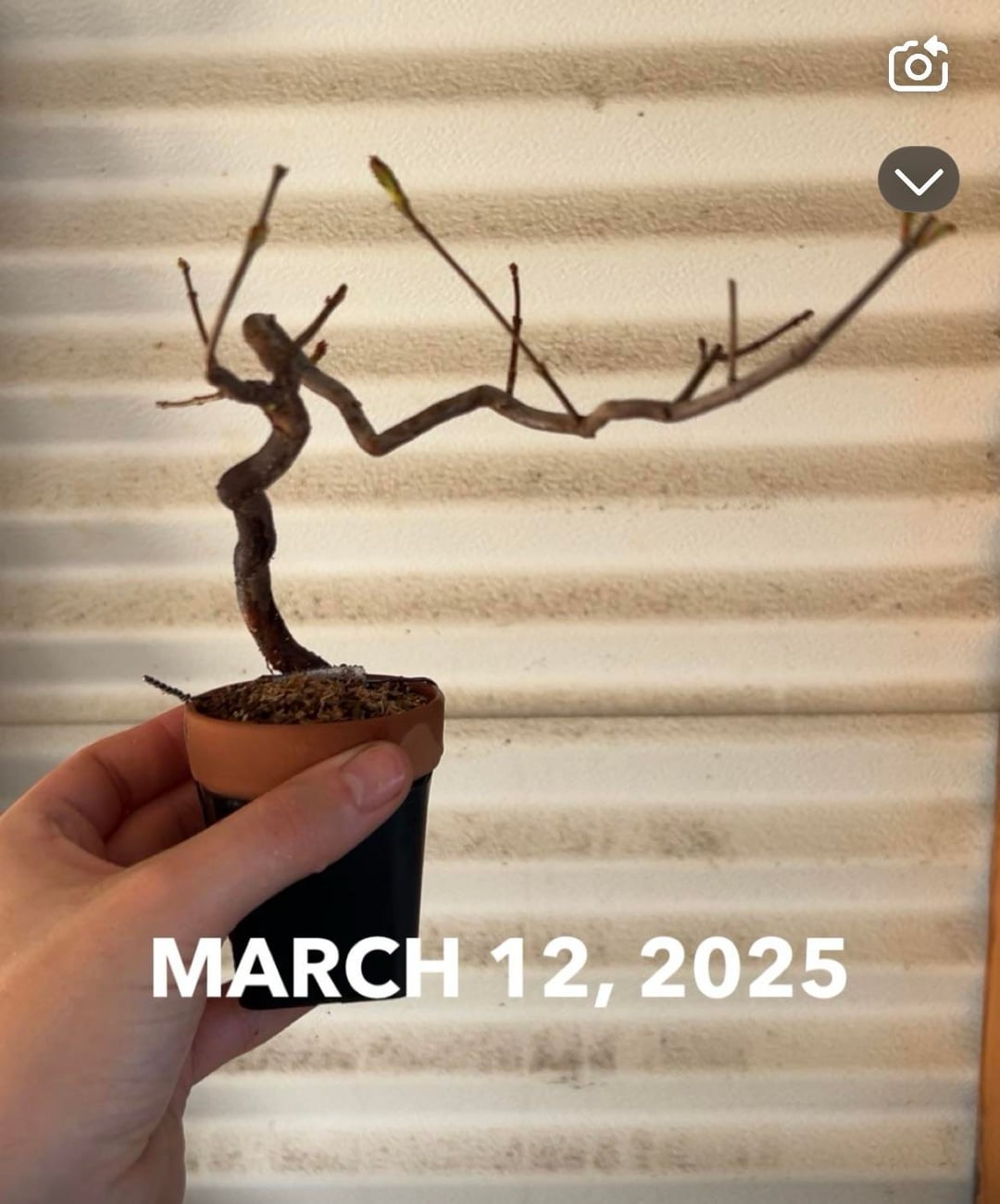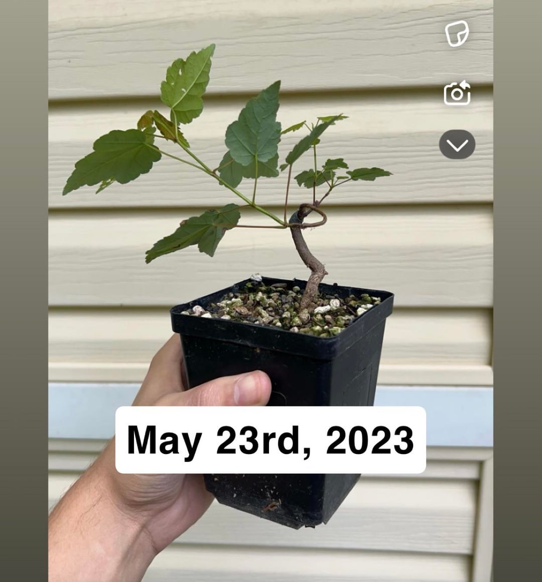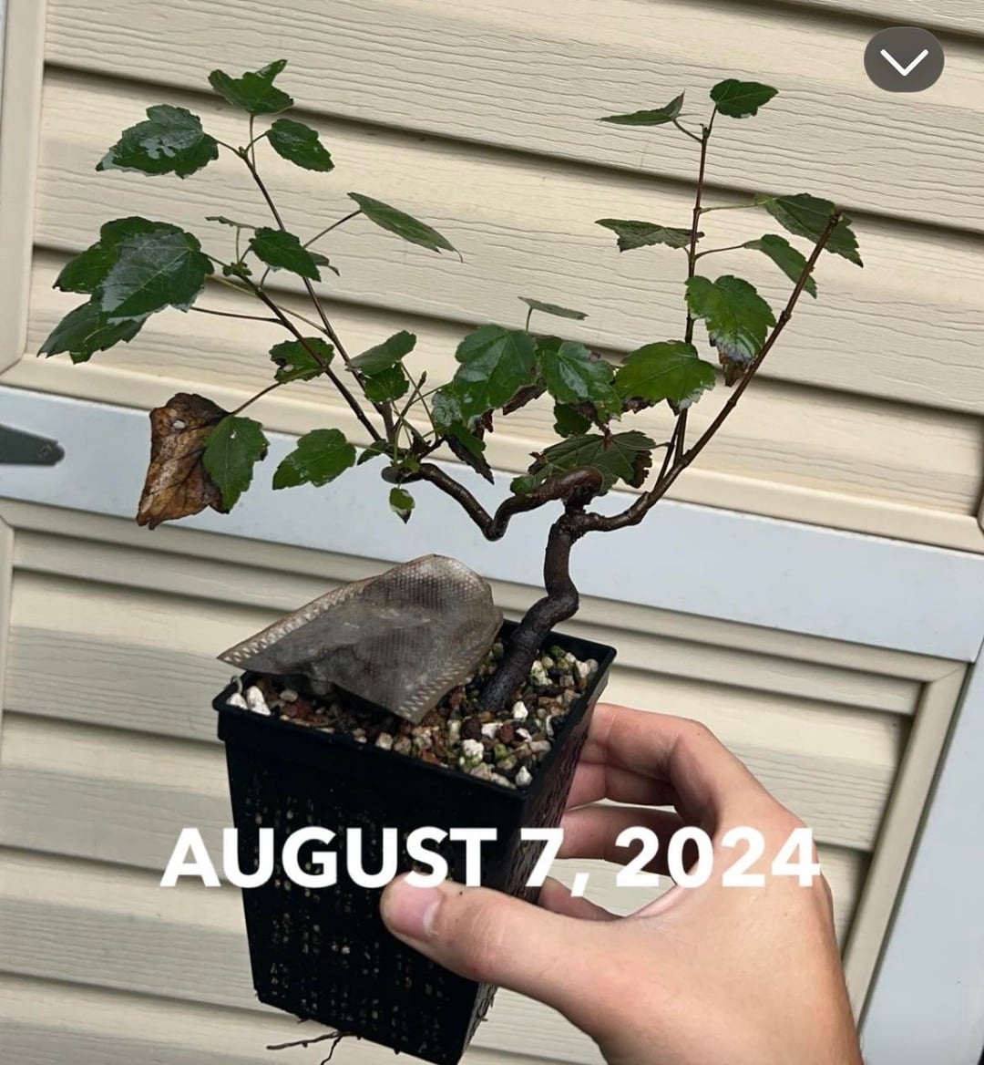 Pictures in order from newest to oldest, dark broody dull fall color this year. It was probably 2-3 years old prior to digging from my yard & I think it’s interesting that the first kink in the main trunk was originally buried beneath the surface in the ground. I’ll switch out the container and probably shorten the length overall in 2026 but I’ll leave it be ‘til repotting season