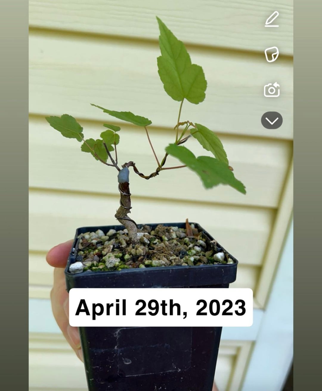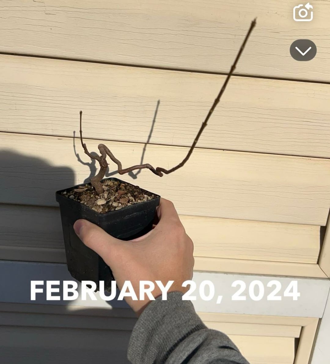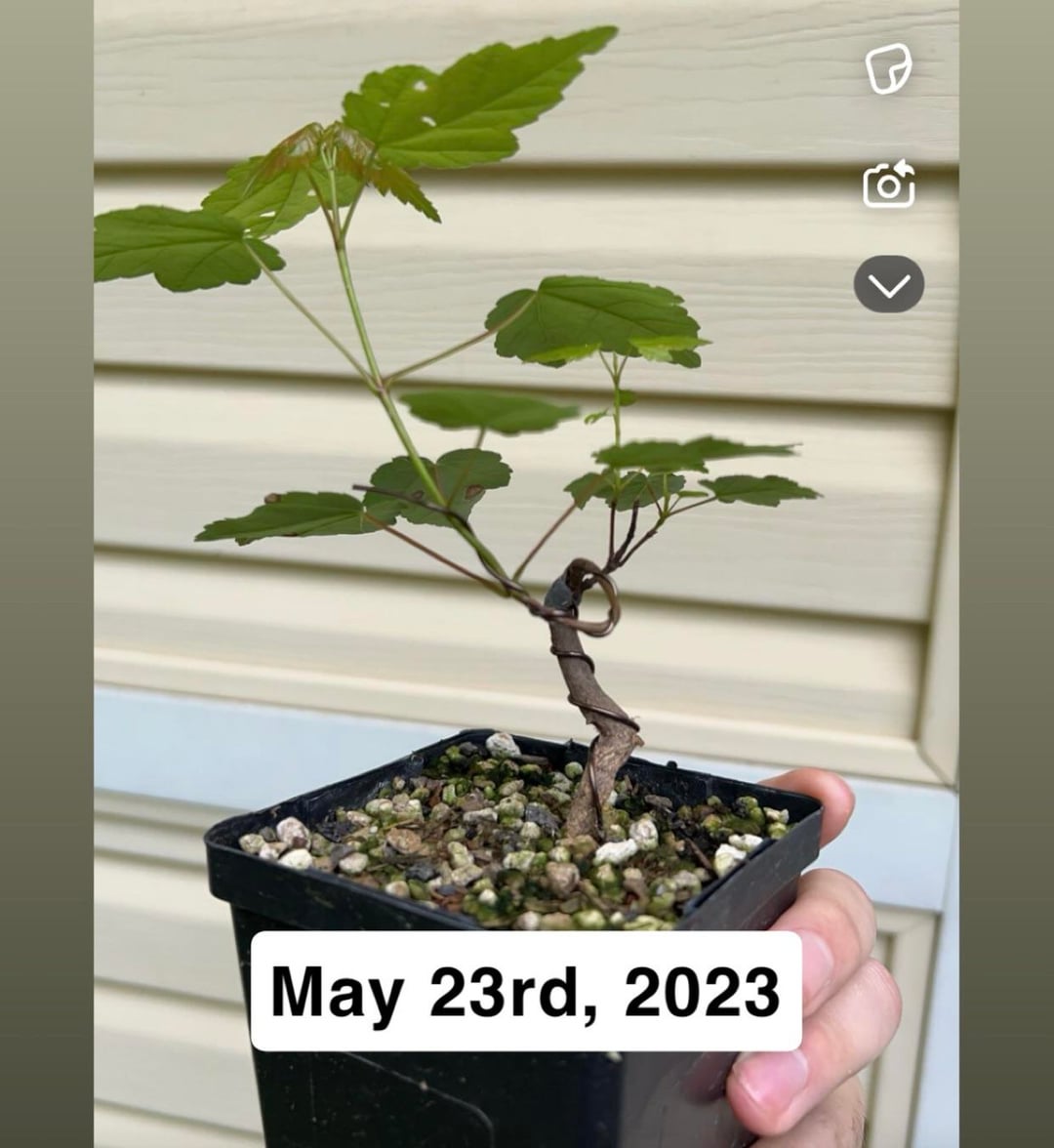 Pictures in order from newest to oldest, dark broody dull fall color this year. It was probably 2-3 years old prior to digging from my yard & I think it’s interesting that the first kink in the main trunk was originally buried beneath the surface in the ground. I’ll switch out the container and probably shorten the length overall in 2026 but I’ll leave it be ‘til repotting season
