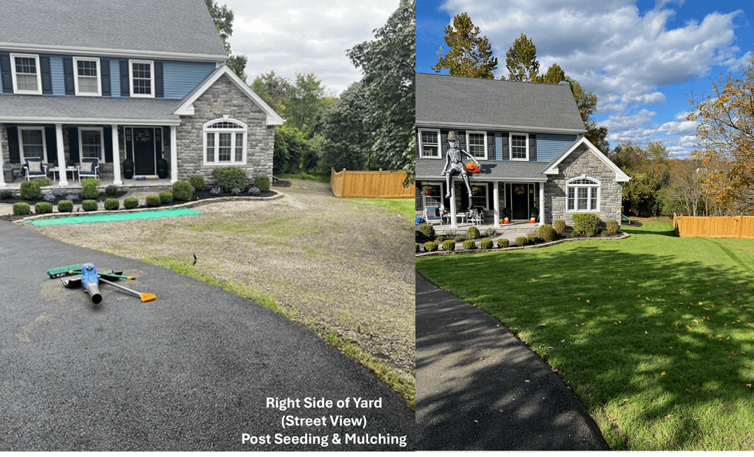 Sharing some progress update from my September 9th and 10th Lawn Reno. I've outlined the detailed process I used, materials, and more before photos in this earlier post, 2025 September Lawn Reno (Zone 7b). The most challenging part was achieving initial seed germination without forecast rain washing seeds down the sloped yard. Additionally, some low spots created challenges for seed germination, but I addressed those and stuck with it. Overall, I'm happy with my lawn rejuvenation and I've set myself up for success in the Spring.