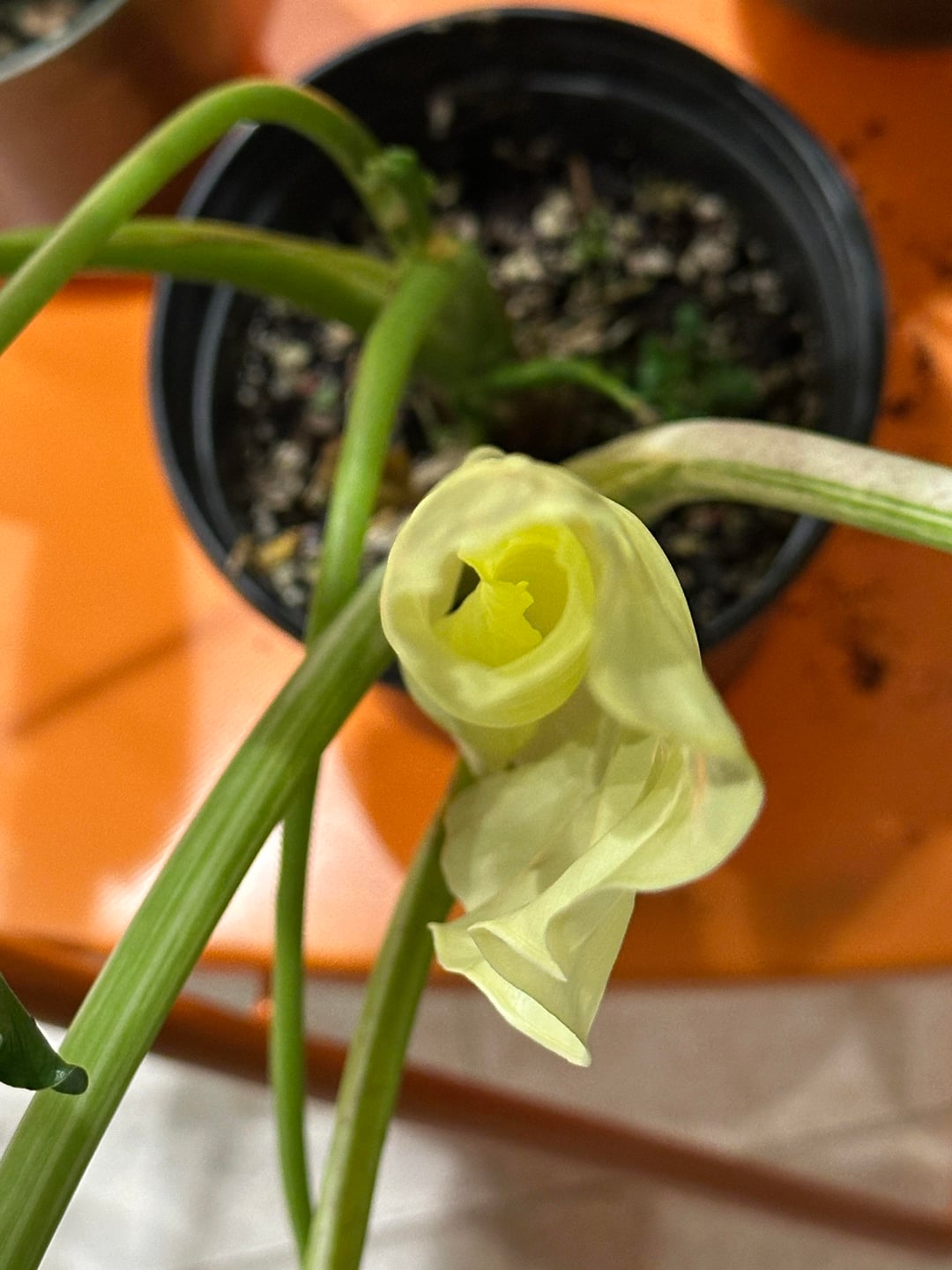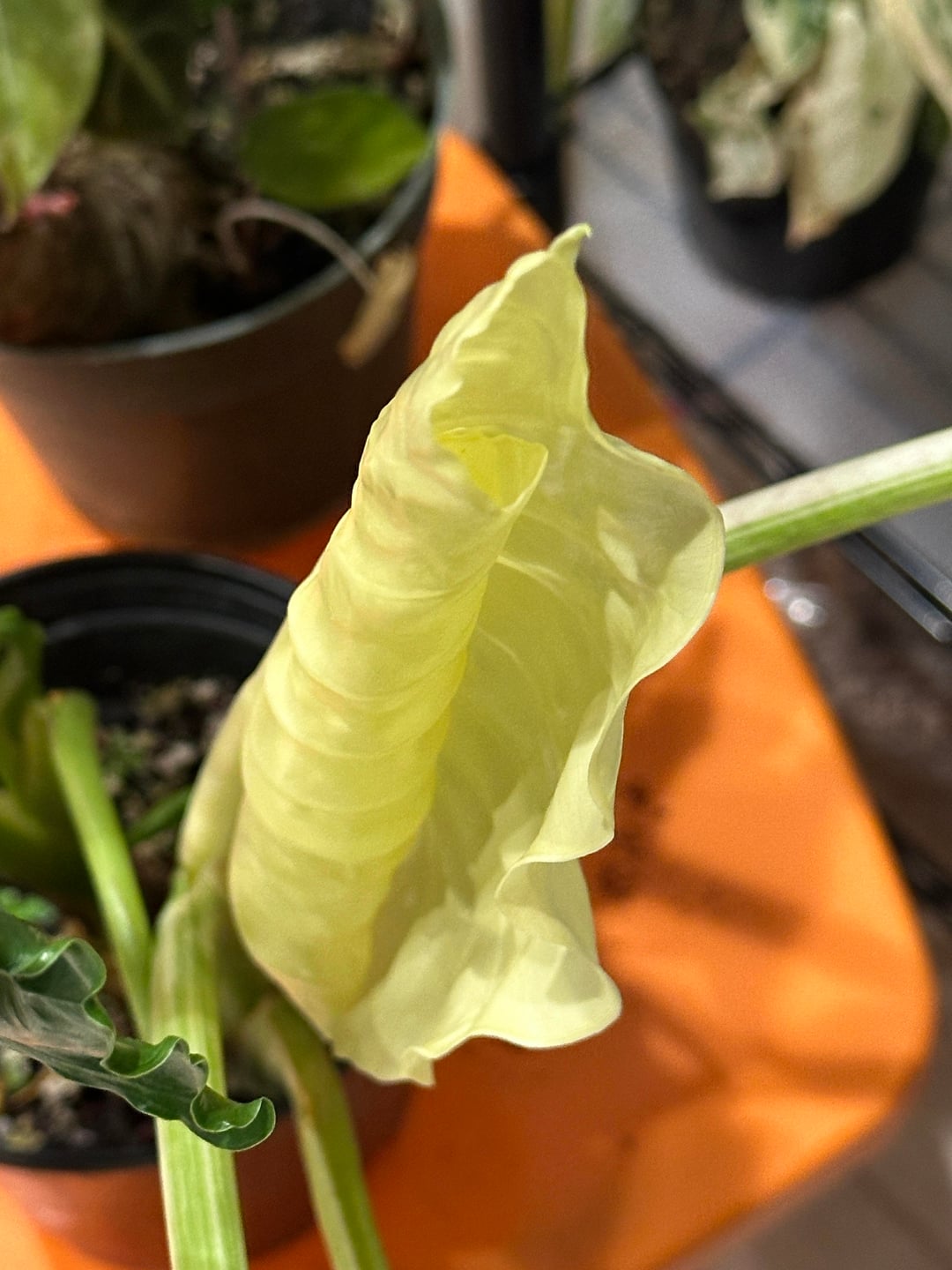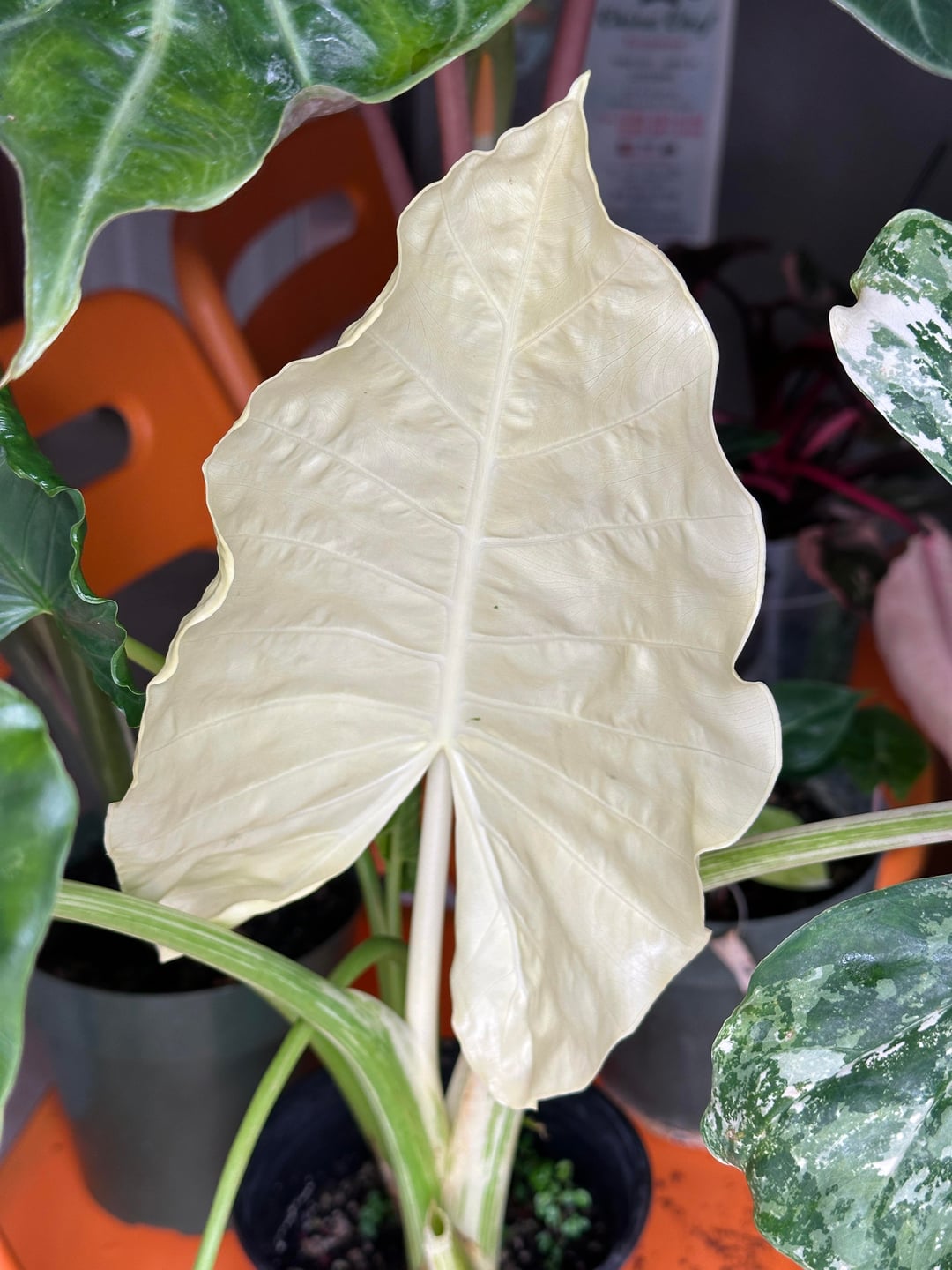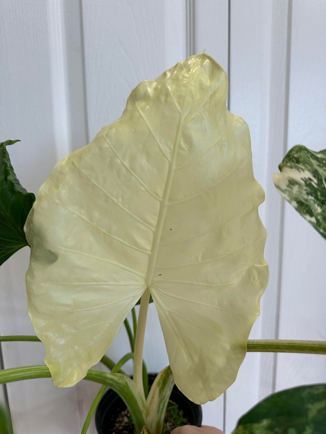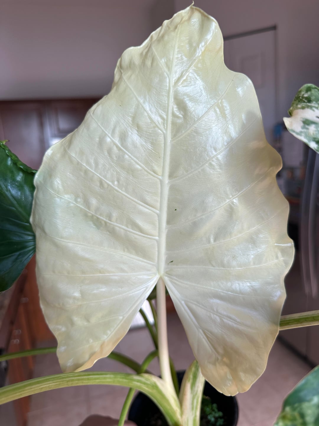 Finally open I see two of the smallest green spots, but who’s gonna get technical? It’s an all white leaf and I’m excited to share it!