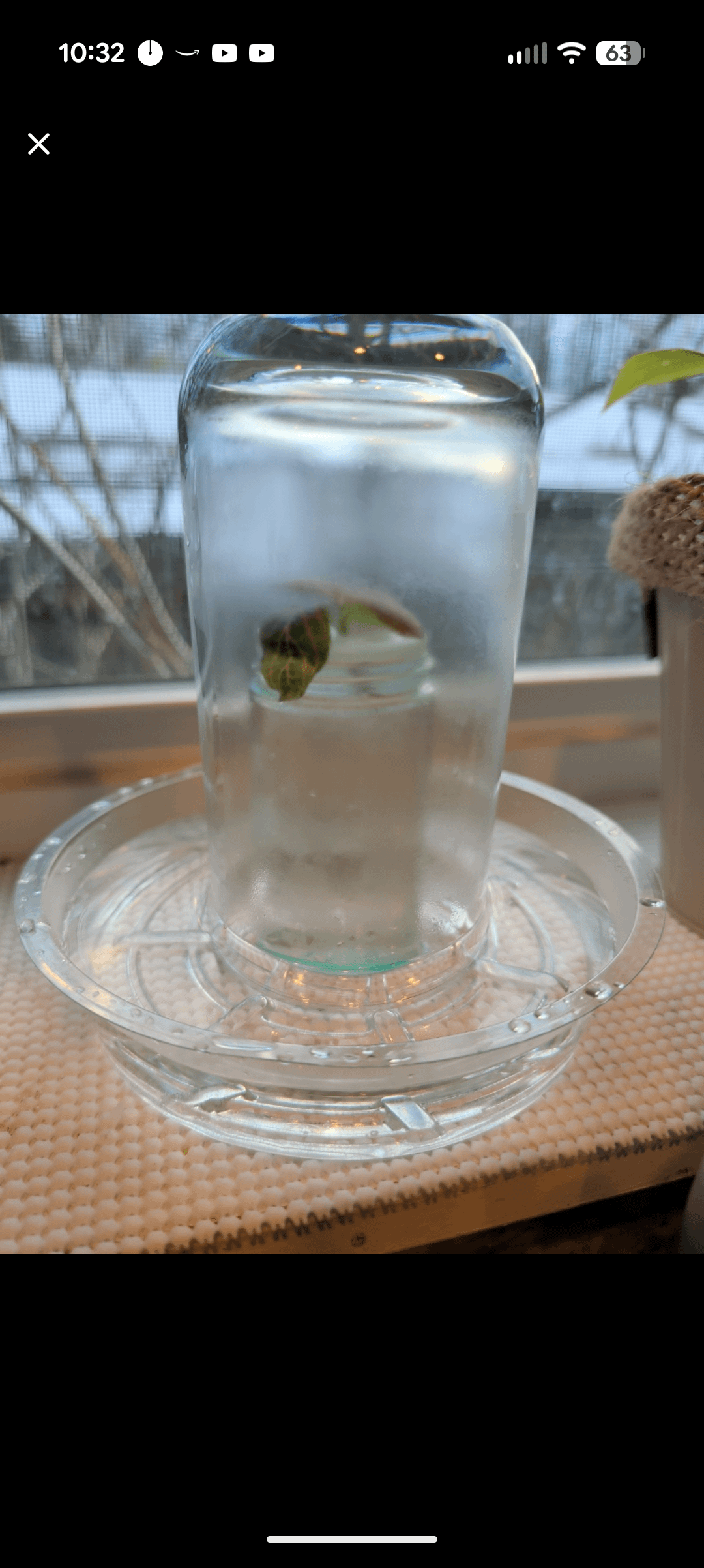 I also have a glass over the cutting to trap the warm, moist hair creating a very effective greenhouse effect better than what I've seen with just the plastic ziplock bags. I'm expecting heat retention from the hot water tray to be better too, raising the ambient temp a few degrees but I lack the measuring equipment to prove my hypothesis.