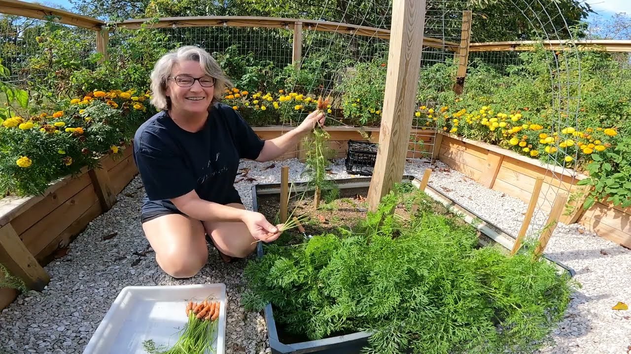 [Music] Hi everybody. Welcome back to my channel, Canning with Kirsten. Today I decided that I’m going to do something a little bit different. We are out in the garden and I’m going to show you around my my garden. And while I have you with me, I’m going to go ahead and dig up my carrots and my beets. So, here we go. Over here we have lettuce, which I’m going to have to get taken care of, cut up. But it’s all I mean like everything that we do is pretty much comes from the garden. So here’s a rogue tomato plant from last year. Actually Jim found it growing in the yard. So I dug it up and here we are. It’s in a pot and it is producing. You got some flowers here where it’s producing. You got a little tiny tomato here. You got some red tomatoes on the vine. I have to get picked. Um here’s some of my marolds. Um this here is asparagus. I haven’t been able to pick it this year, but next year I’ll be able to get asparagus from it. And then I have all tomato plants over here. But look at all the cherry tomatoes that I still have. There’s a bunch of green ones, a whole lot of red ones. I mean, and they’re massive. And again, you know, there’s more maragolds over here, but I I planted a lot of tomatoes, you know, just because, you know, we go through a lot for canning purposes. So, these are all tomatoes. And then, yeah, like you can tell that most of them are half dead. Okay, we’re getting through the end of the season here. Yep. And then here’s a pepper plant. And I’ve still got a couple peppers on it. three at least three peppers that I can see right now. There’s a little one here. And then um that other pepper plant has like three or four more peppers on it. I’ve already pulled one of my pepper plants because it was just dead. And then um over here I have more asparagus. And then over here are my beets. And if you see here, like down below as they’re popping out, they’re ready to be pulled. These are all my carrots. I should have thinned them out, but I never did. So, we’re going to I did um pull some yesterday, and I’ll show you those. Those are on a plate inside. I’ve already cleaned them up and taken the grains off, but I’m going to dig these up and see what we got. So, let’s see what we got here. The ground was a little tough, was a little hard, so I had to uh use my digging tool, but here’s one. It’s small. Little little nubs. Yes. But, you know, I do um have bigger ones in there. Yeah. I got uh I dug a couple up yesterday that were probably about that long. So, like six inches or so. Apologize for the dog barking. They don’t ever shut up next door. So, yeah. Anytime we’re out here, if they’re out here, if they’re outside, then they’ll just bark and bark and bark and bark. This one’s a little one. Yeah, I won’t even use that one. But look at that one. It’s thin, but it’s cute. And and they taste so good. Well, a lot of those are pretty small. Yeah, they are. But they’ll be fine. And in all fairness, we got a late start in the season this year planting uh cuz we were still building building this garden. We had to literally clear the ground, level it, put in concrete posts, and it was quite the chore. So, we did get about a probably what 45 day late start, maybe. Oh, yeah. 60 days. It was really late. And um I did want to say um welcome to all my new subscribers. I’ve gotten quite a few new subscribers over the last couple of days and uh I really do appreciate your support and I I hope that you are enjoying the channel and continue watching. I mean, they’re little, but you know, I could use them as baby carrots cuz they are they’re little babies. All right. Okay. Well, I think I’m going to go ahead and get these pulled and then um as soon as I am done with these, I will get over to the beets. But I will be back before I start digging the beets up. All right. So, look at all those. Some of them are like pretty small, but then, you know, we have others that um are much bigger, you know, like this one’s bigger. It’s not They’re not huge, but But they’ll can. Yep. And they sure are tasty. Okay. Off to the beast. Yes. I mean, look at that. That’s a nice looking bait. And here’s a baby beet. Nice. There’s one of those purple ones, huh? Yes. Look at that. That’s nice. Yes. And there’s another purple one. But they certainly do look completely different, don’t they? Yes. All these like little white flowers, they’re going to turn into berries on the asparagus plants. And I’ll pick all the berries off. I learned this today. I will pick all the berries off. They’ll each have like three out of seven seeds in them. So, I’ll pop the seeds out and then I’ll dry them. And then um in January I’ll be able to plant them and start getting the crowns, which is the roots growing from the seed. Then I’ll have a lot more asparagus plants. But uh this fall later on, like after the frost, all these will die down. They’ll they’ll turn brown and then I’ll cut them all off. And then next year I’ll be able to start cutting off asparagus. And it’s a very small window. It’s only a couple months. So it’s like April, March, April, you know, is when I’ll get like the majority of my um asparagus and I’ll get those canned. So that’ll be another video this next year. That’s a pretty good haul you got there. Yeah, it’s not bad. Yeah, like I said, I’ll get these cleaned up today and tomorrow we’ll start another canning process. So, you know, like you’ll be able to see all that as well. Awesome. So, we’ll see you guys in just a minute. All right, everybody. I’ve got all the the greens cut off from the beets, the turnups. I’ve never seen turnups. I’ve never had a turnup, so I had no idea that these were turnups, but I did a Google lens and that’s what they are. And this is what we ended up with. So, we have quite a few carrots and that includes the ones from yesterday. So, you 