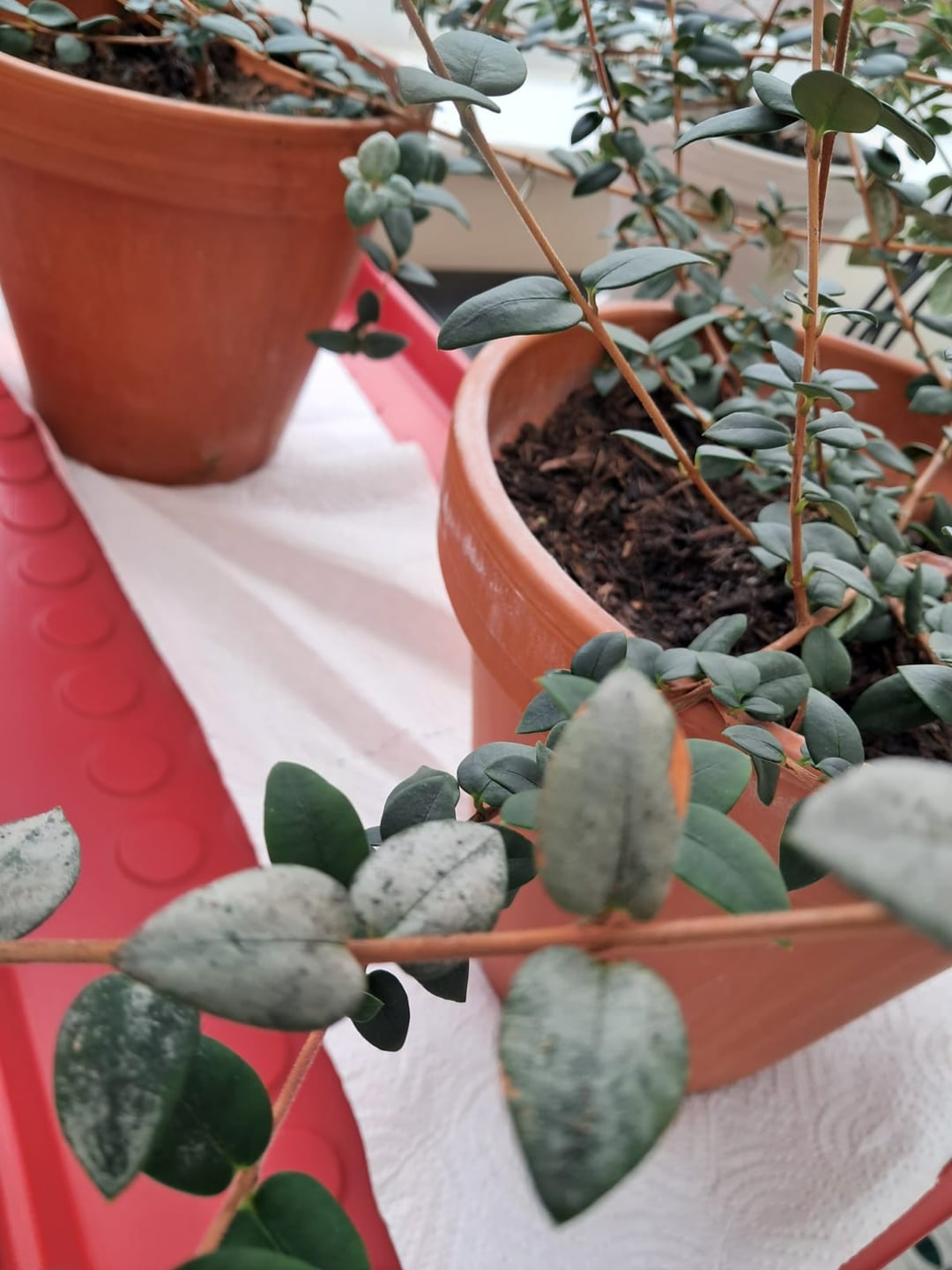 I bought my mum some chilean guava plants recently. One of them arrived with what we thought was white discolouration to the leaves, but this has now spread quite a bit. There are also now black, flattish blobs on the leaves. I suspect something fungal but I'm not entirely sure! Whatever it is, the plant is starting to look unhealthy. I've tried spraying with SP Plant Invigorator and Pesticide (which is a surfactant based pesticide) to no avail.