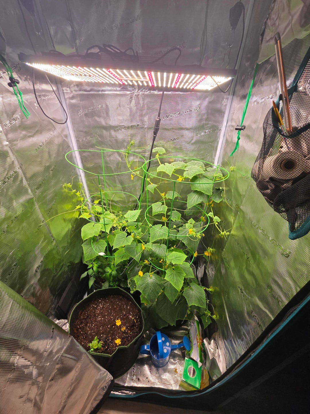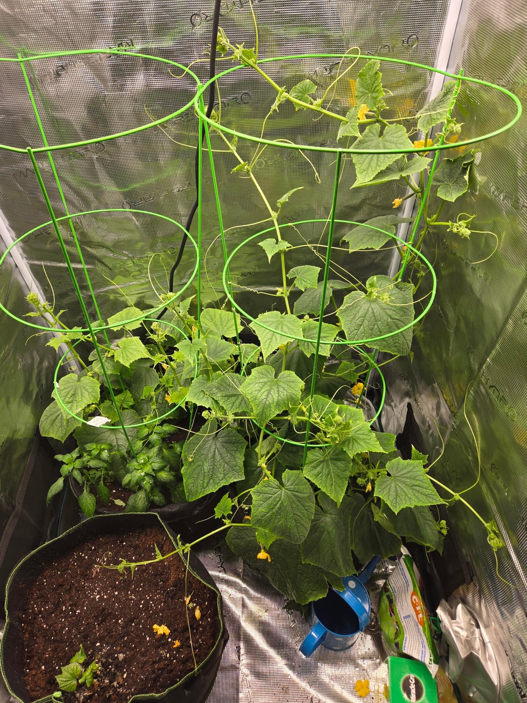 First indoor cicumber grow setup ever what you think by MoustachMaster Indoor Garden 1 Comment Massive_Flamingo_786 1 week ago I like it! Are you going to let them trail on the ground? Are you cutting off shoots are just letting it go wild?