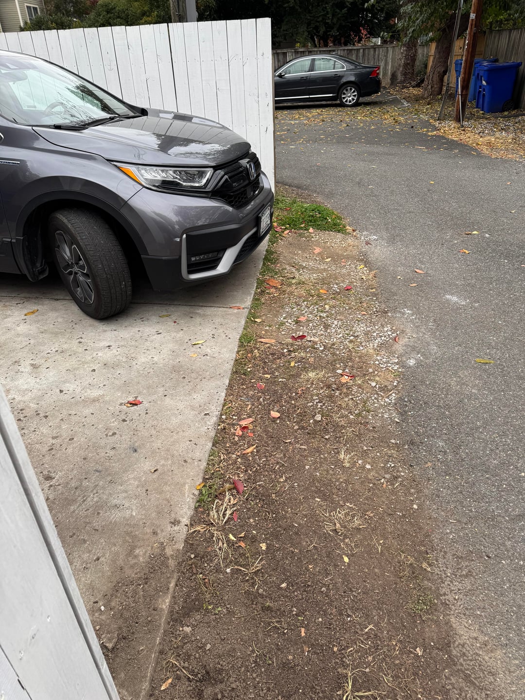 I’m just wondering how you all would improve this strip of grass and gravel. I’ve considered gravel, or river stones. The fresh looking soil is where we just removed a planter box I’d built that had been run over a few times and started rotting too.