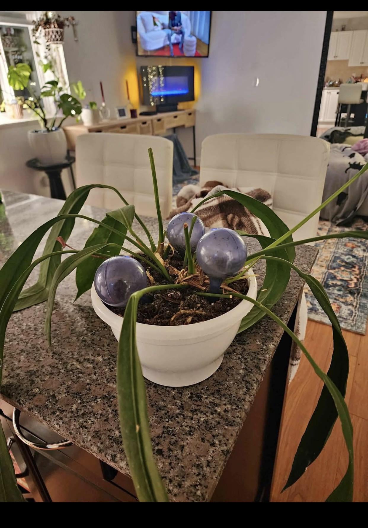 Those are just watering globes, not fruit! The plant looks like it’s having an identity crisis.