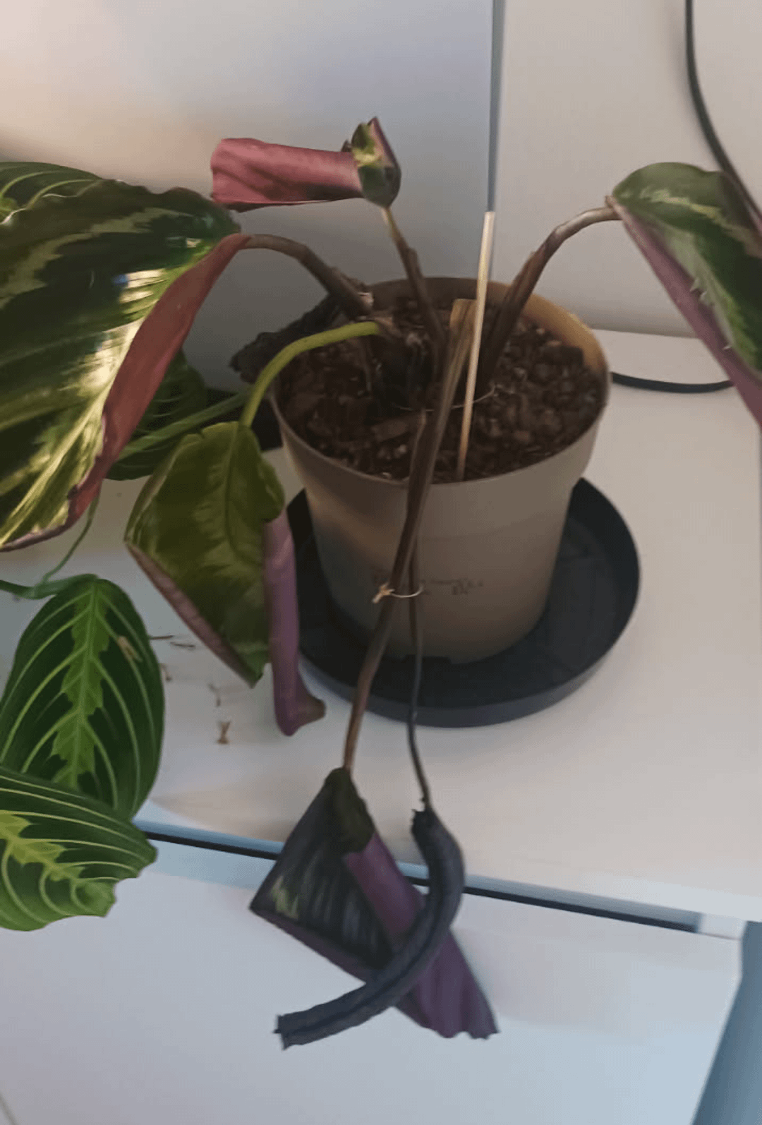 So here we are a month later, she never recovered and i have no idea what is wrong with her. I have 8 different calatheas that are thriving and despite some issues with me learning how to water them properly – I never killed one or even make them look this bad.