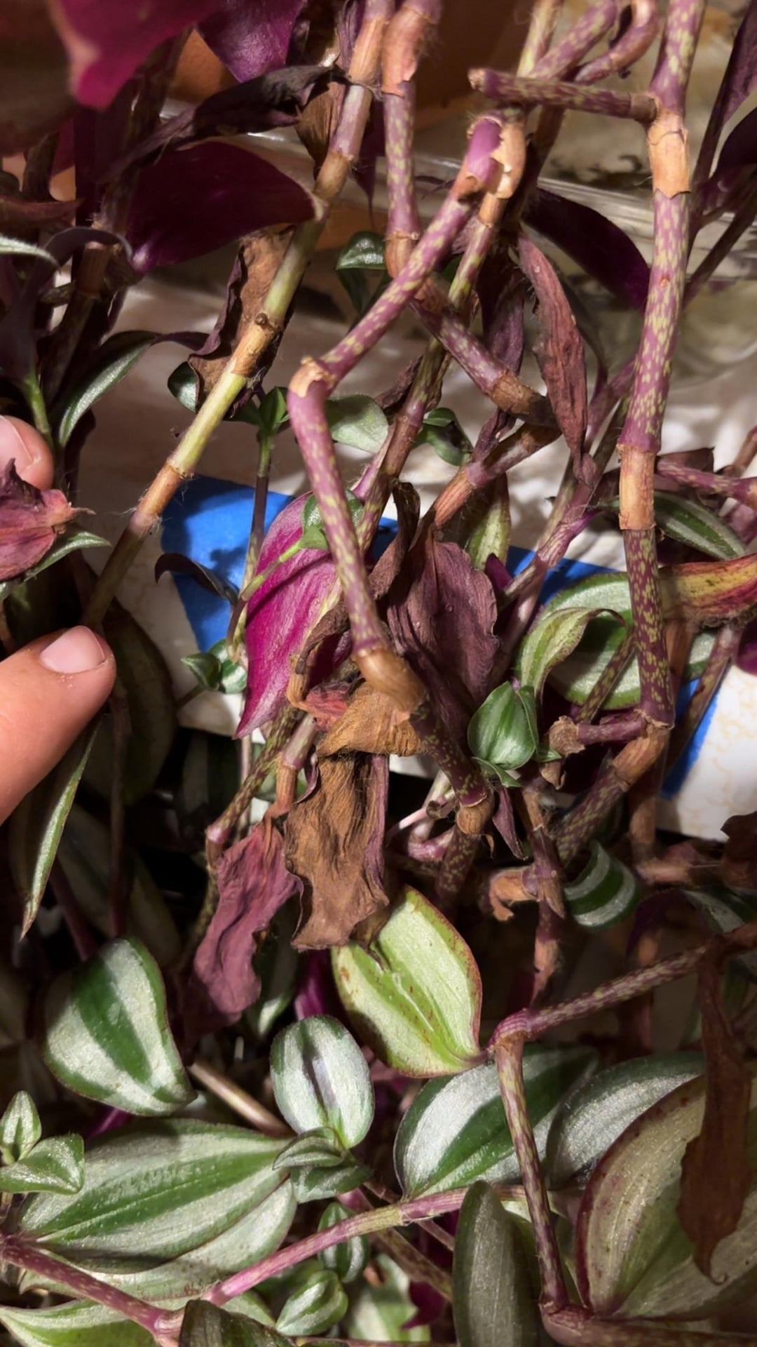 Once it starts to recover a bit, you may want to take some end cuttings, pinch off the bottom couple pairs of leaves, and poke them gently into the soil in the middle. This will help it fill out faster and keep the pot from sitting wet for too long so that it won’t get root rot.