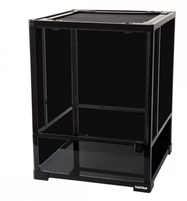 My favorite so far is the HabiStat Glass Terrarium, but it comes with blacked side glass, so it's less transparent.