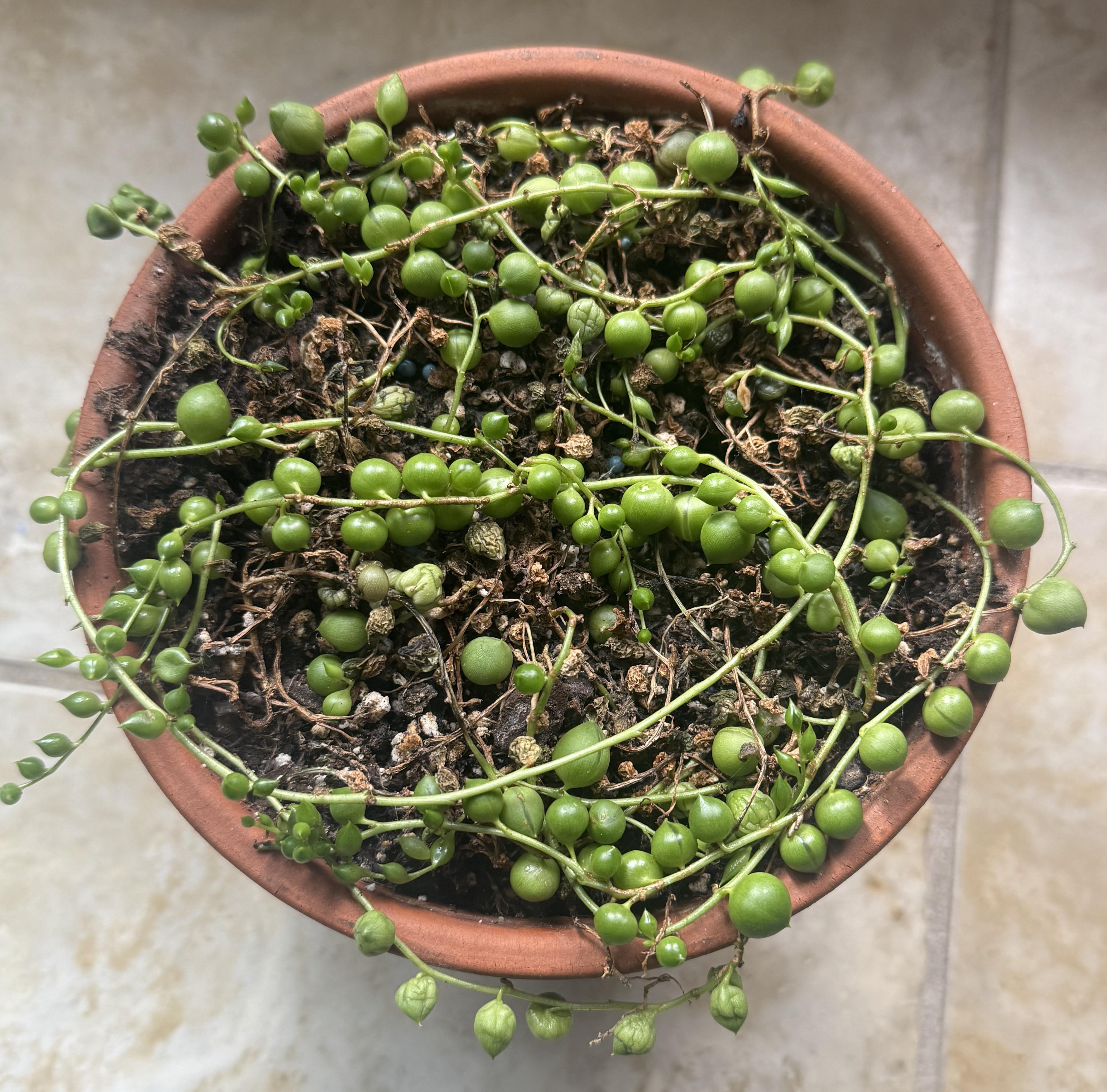Mine was like this, cut the dead ones, it ended being just one huge strin, wrapped around the same soil and got a light for her, she’s doing great, the other cuttings I placed on moss and they’re growing as well, no other method of prop worked before so moss is a must for me.