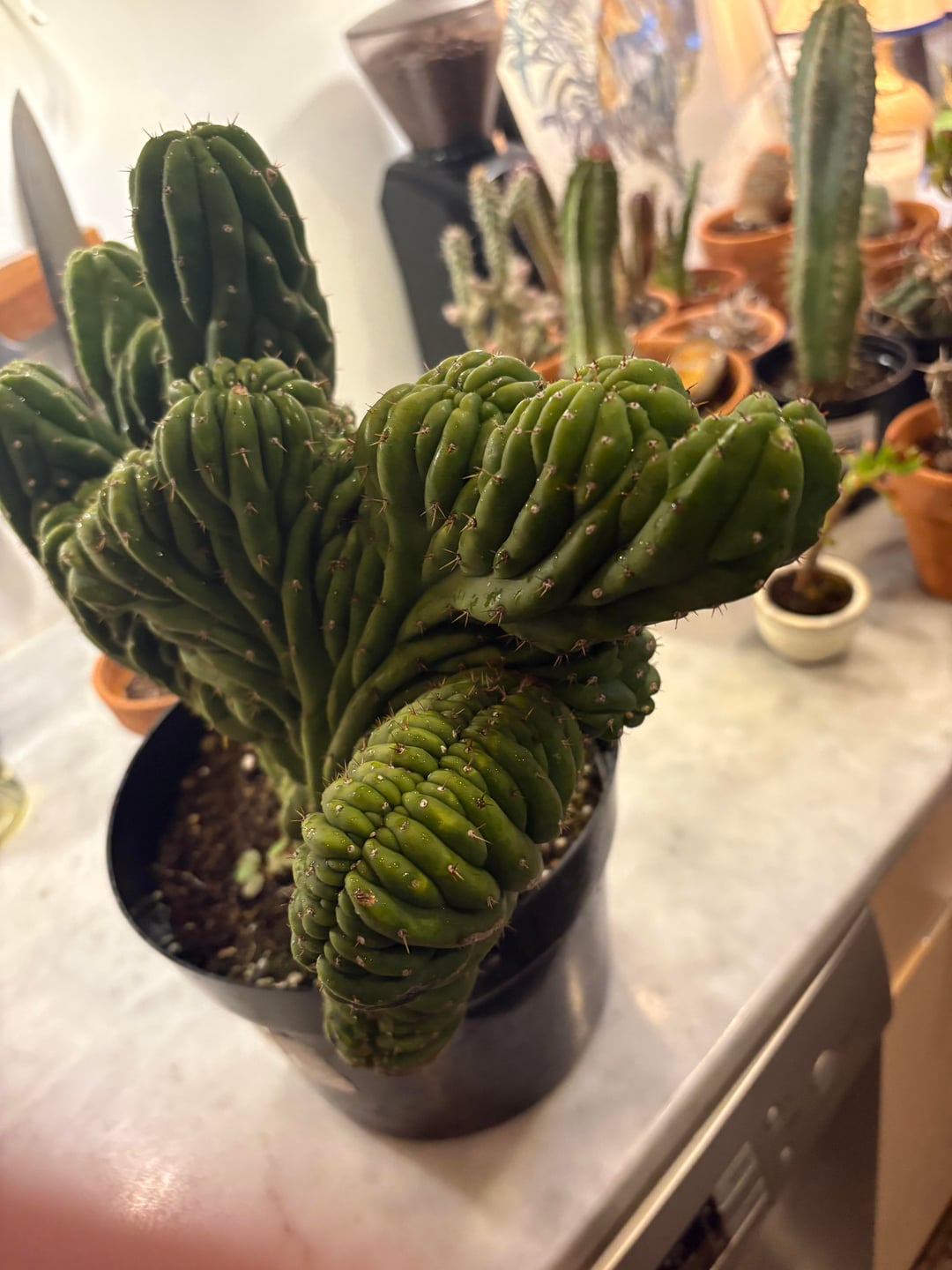 I bout this cactus two years ago from Succulent Source. It’s outside (zone 7b/8a) for spring, summer and fall, inside for winter. It’s a beautiful cactus to watch grow! by Salmon_Berries cactussan pedro cactus 1 Comment Odd_Cantaloupe_7122 2 weeks ago Such a beauty 🤩👌