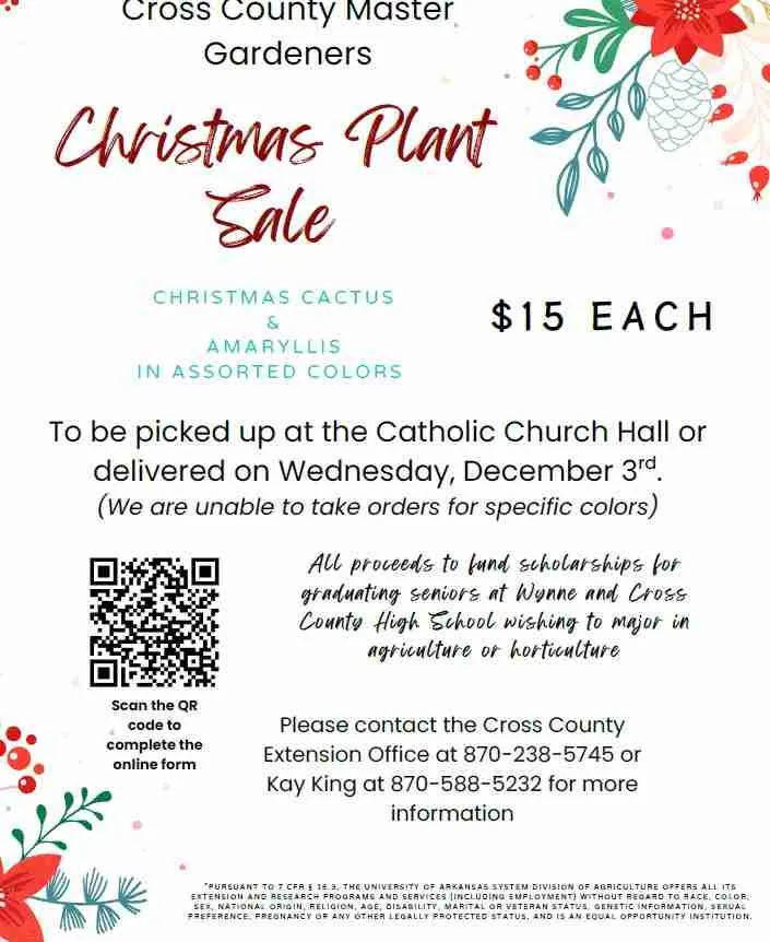 CROSS COUNTY — The Cross County Master Gardeners say a limited number of amaryllis remain for its annual Christmas plant sale. Christmas cactus are sold out.