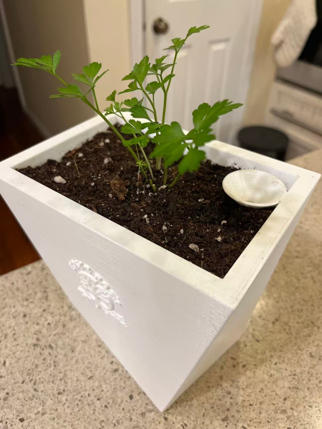 I just planted this little parsley in a self watering pot and it is my first time moving my herbs indoors for winter.