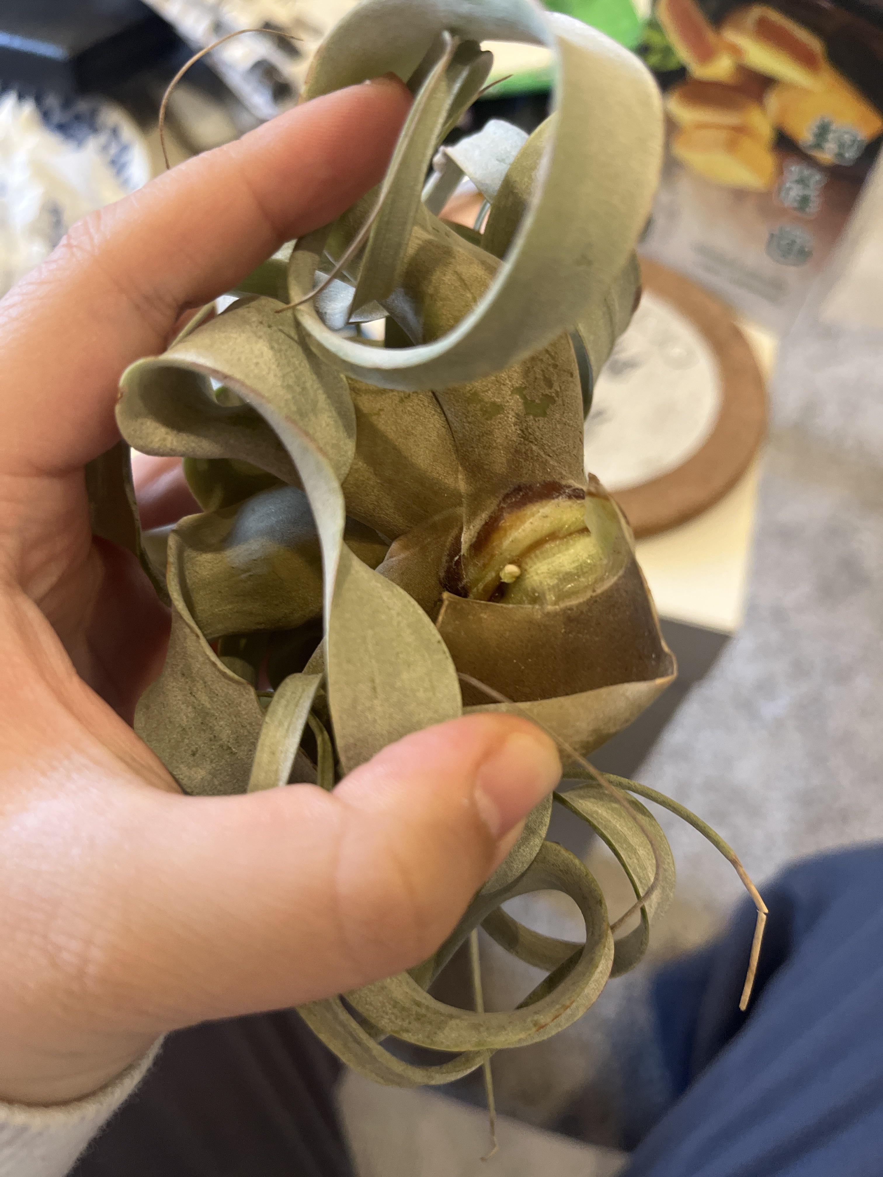 Wanted to share this exciting news! My xenographica had a center rot two years ago after I soaked it in water and left it outside in the summer. However I didn’t have up on it, regularly soak and air dry it with other air plants! Now it has a small growing point inside one of the outer leaves!!!