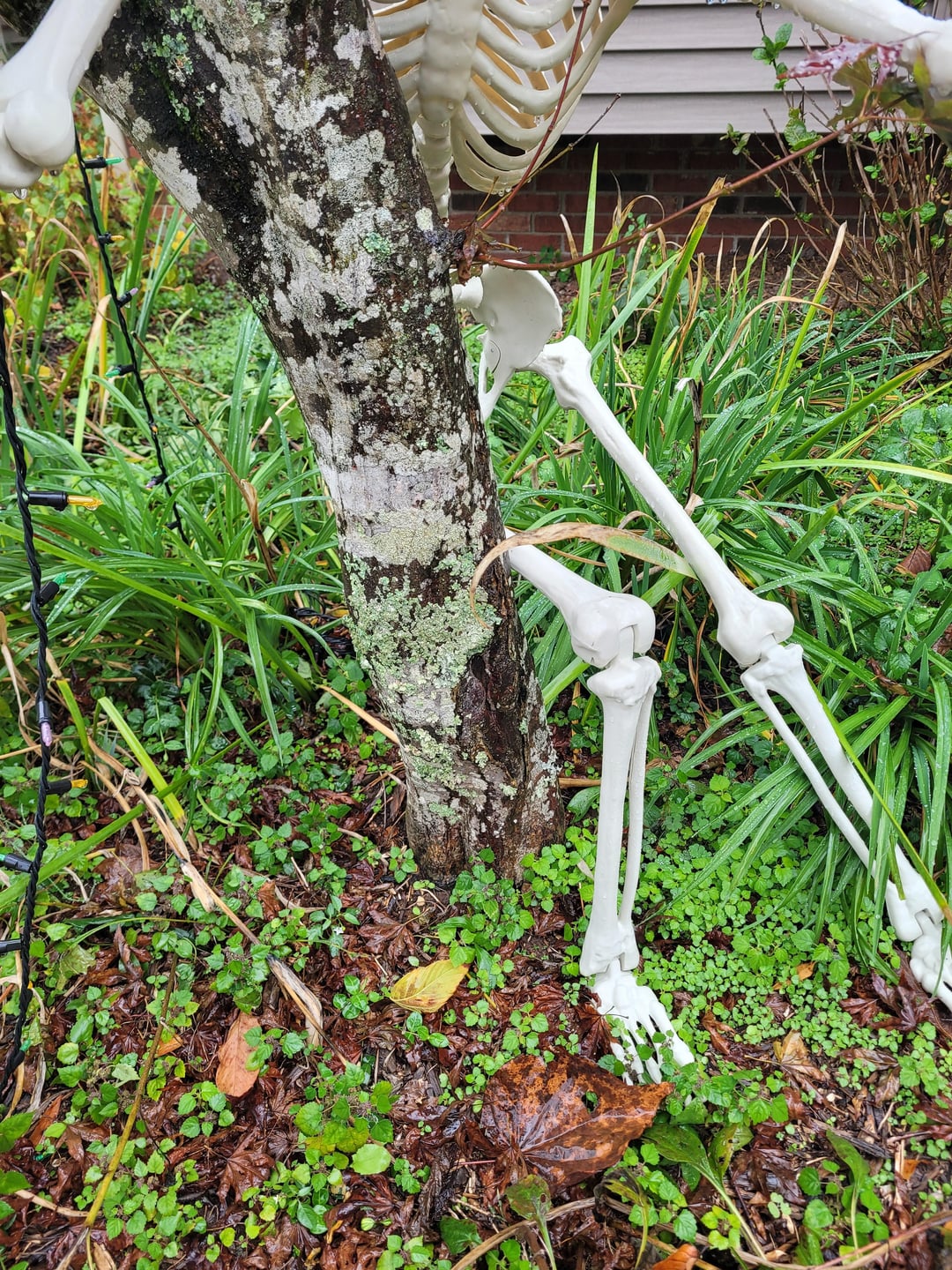 The overall additional of too much calcium from the decomposing bones of the skeleton can be detrimental to the tree, raising the pH level past where it is comfortable. (Same goes for Limestone and other lawn treatments that affect pH level).
