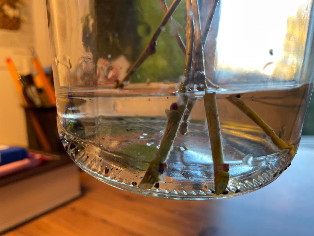 At first, the leaves were green and looked fine, but now they’re brownish and dry, and half of them are falling apart. I change the water every day. For the first two days, I added a bit of honey and charcoal; now (day 3), just charcoal. The jar stands under a transparent plastic bag (for humidity).