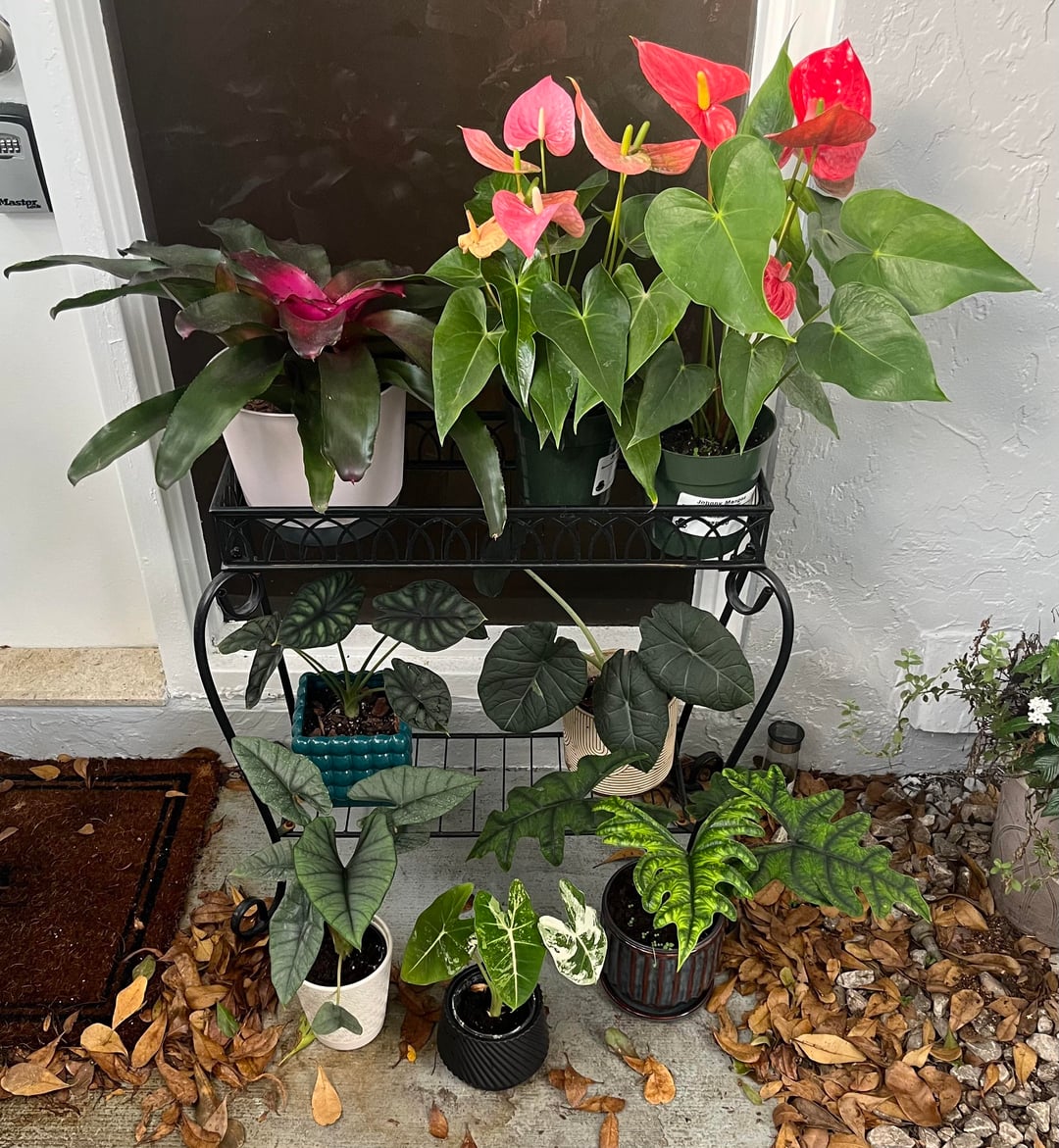 I purchased my first Alocasia in June (Alocasia Wentii) and I think I’m up to 10 now? At first I didn’t think much of them, but as I did more research into Alocasias and how to care for them, I started coming across different varieties. And then I found a Pink Dragon at Target, and that was the tipping point 🙈 Now it seems like every time I purchase one, I discover a different one that looks unreal. I feel lucky that my local Home Depot and Target carry some cool alocasias, as well as some local nurseries and the occasional plant/orchid festival; I got the Wentii, Silver Dragon, and Platinum from Home Depot; the Pink dragon, Melo, and Black Velvet were found at Target; the Maharani is from a local nursery; and then the Frydek, Jacklyn, and Dragon scale were found at an International Orchid Festival. At this point I’m kinda just learning on the fly, but I will admit it’s a cool hobby and I definitely get the hype now. I attached some pics of my collection. Sorry about all the leaves, we just had some crazy weather and I think it’s time to invest in a leaf blower. Enjoy!
