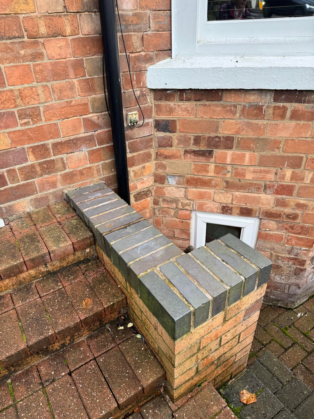 On the other side of the steps (2nd pic) I want to put a planter on the wall (screwed into the wall as the pots there got stolen as well – right in front of my video camera!). Any ideas? It's North facing, very little direct sun in winter and quite exposed to wind. The wall is about 1m long.
