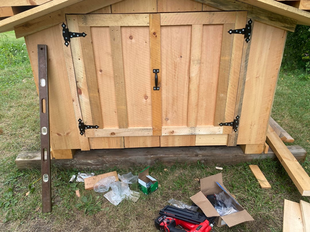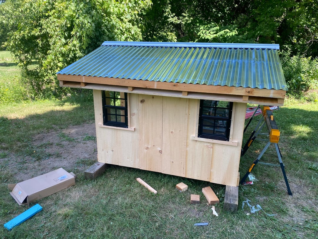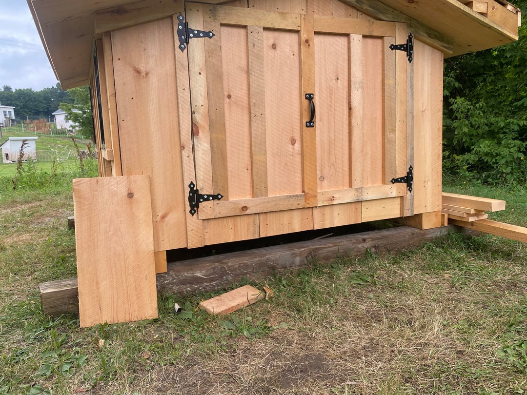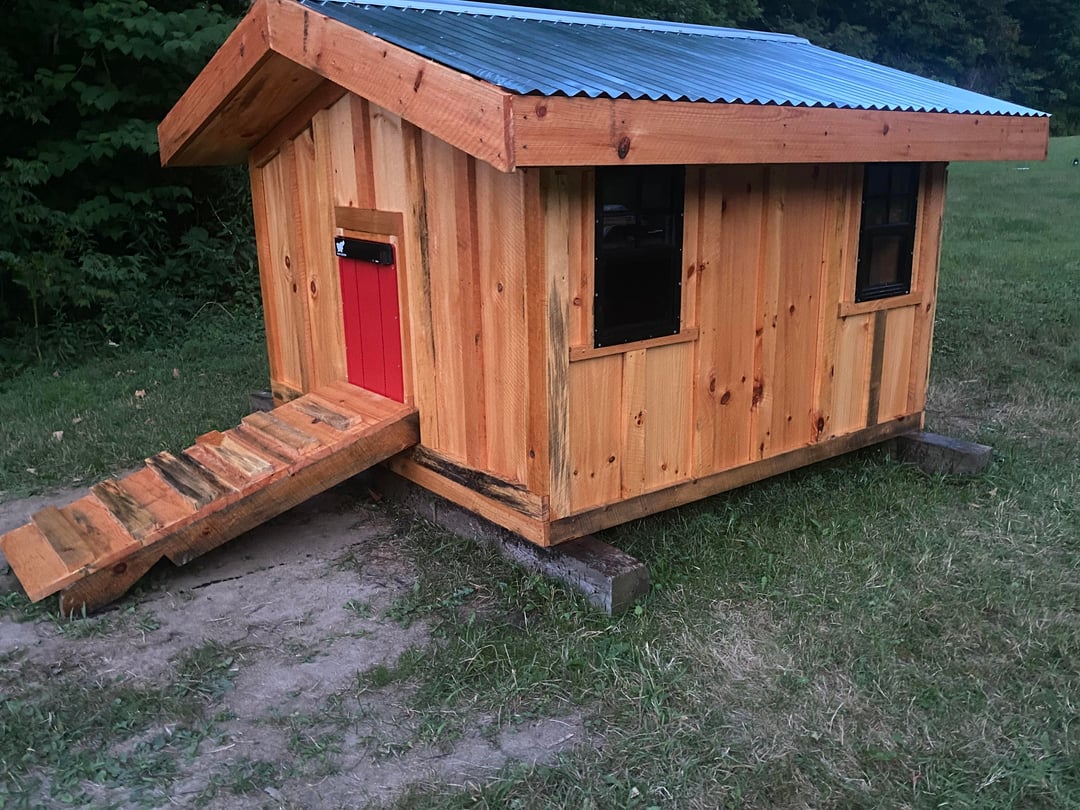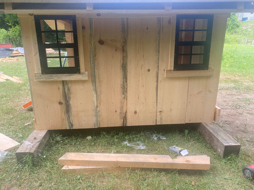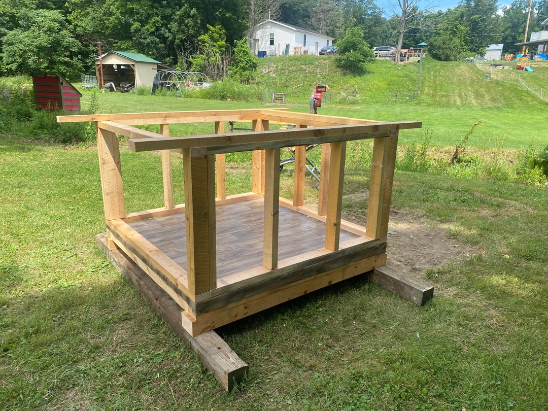 I used mostly rough cut lumber from a local mill. I’m trying linoleum out for an easy cleaning floor and seems to be holding up well so far. Last picture was after treating it with Thompson’s water sealer.