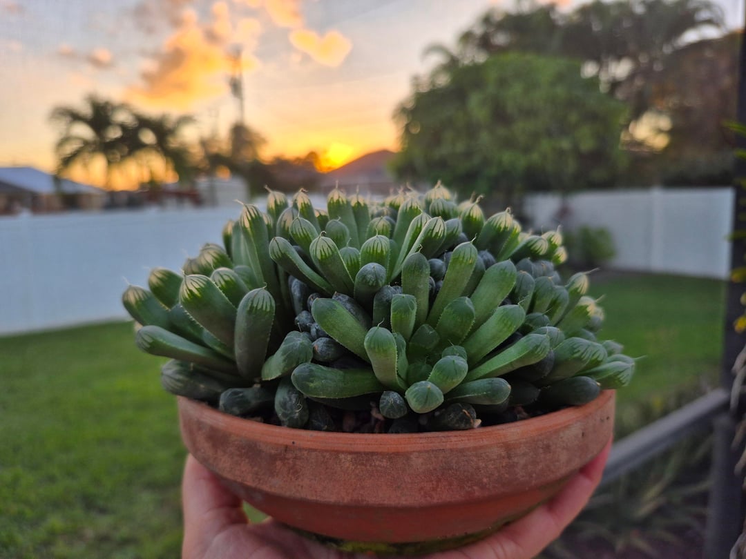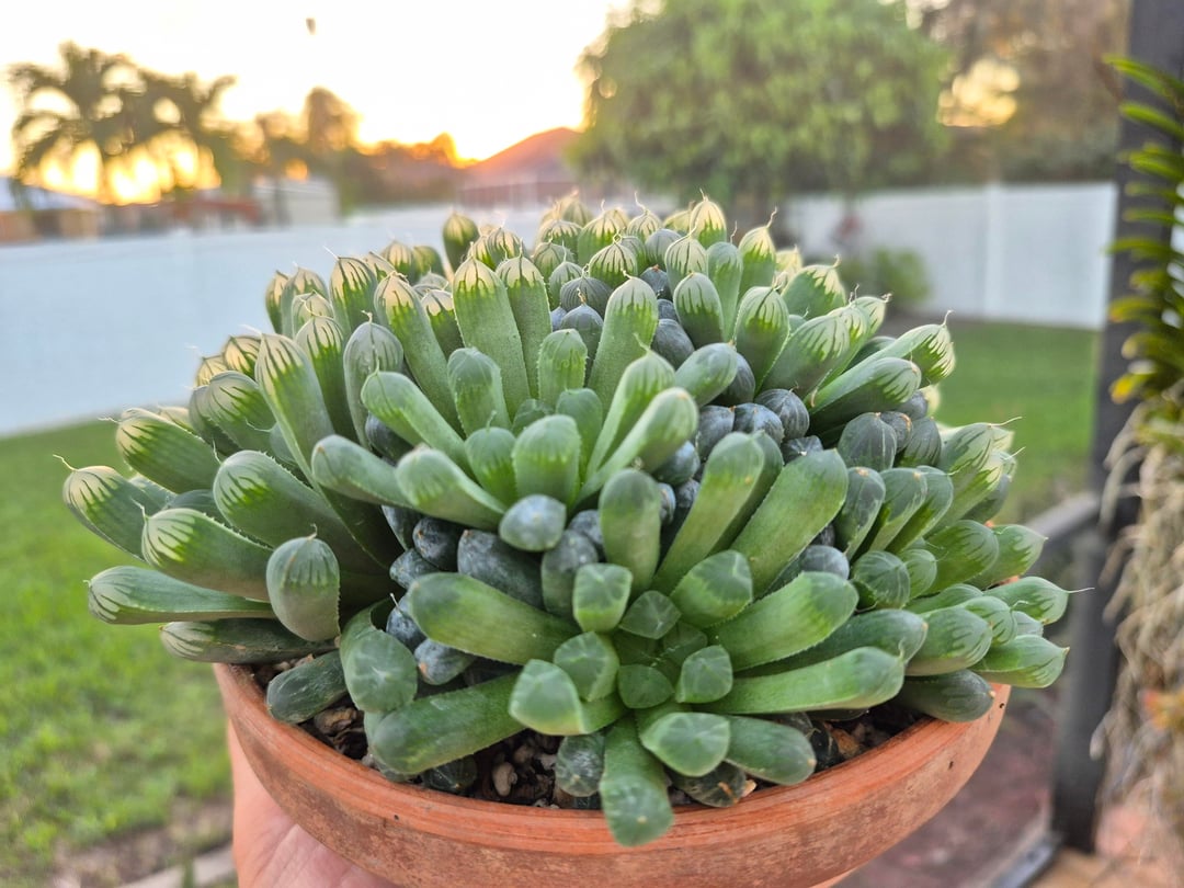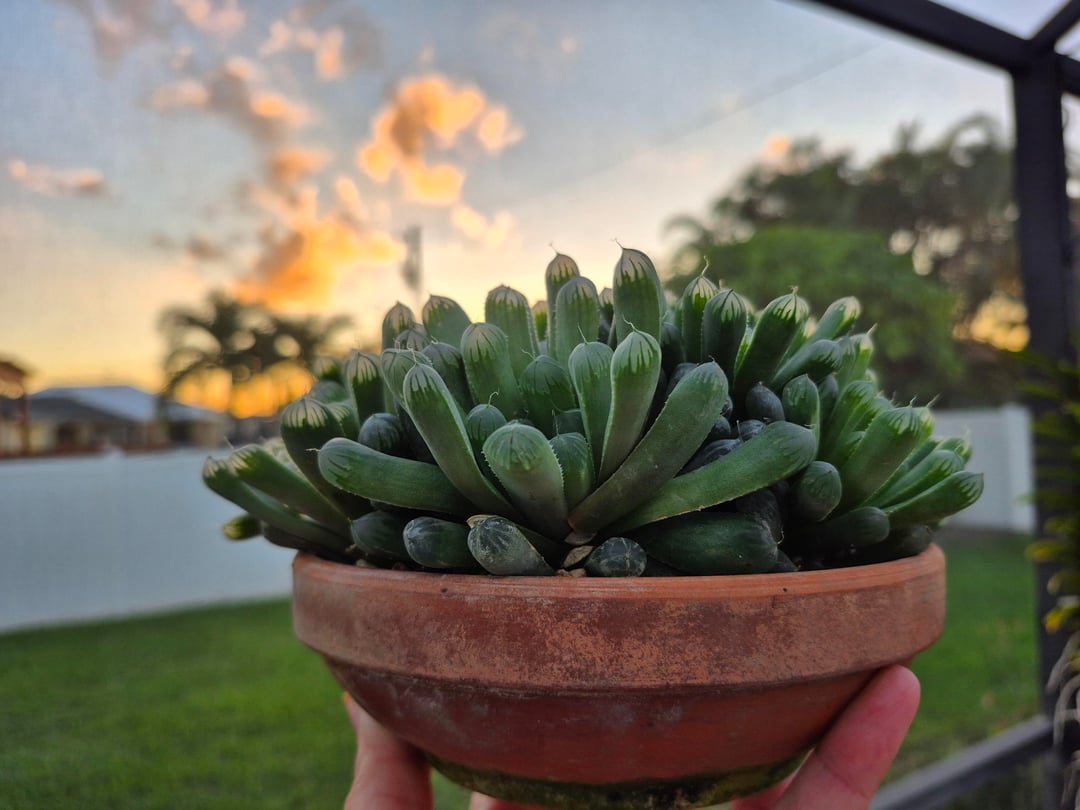 Haworthia cooperi var. obtusa extremely etiolated from lack of light.