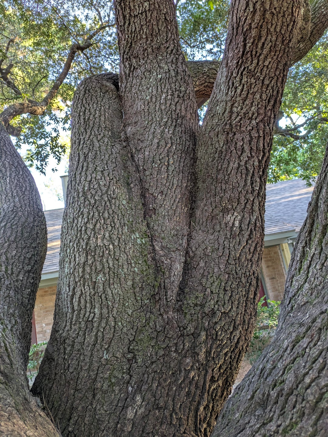 This is something that should have been taken care of 20-30 years ago, and too late now. There’s nothing you should do now but to keep the tree healthy and happy. Do a visual inspection once or twice a year. If you see stagnant water in between cracks, call a certified arborist. If you’re a naturally anxious person, start an emergency savings account.