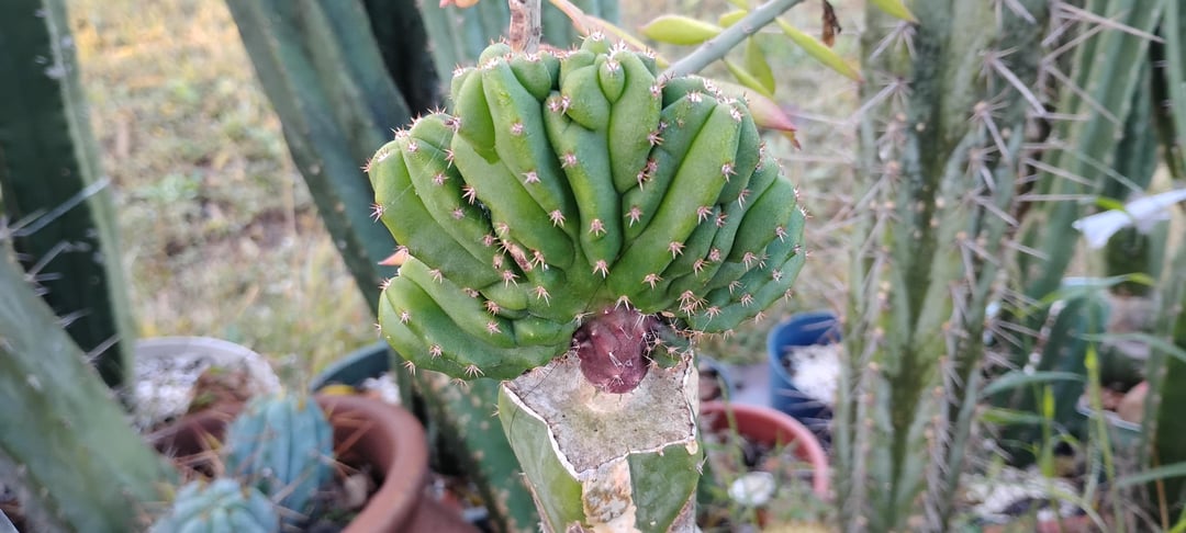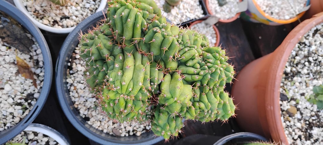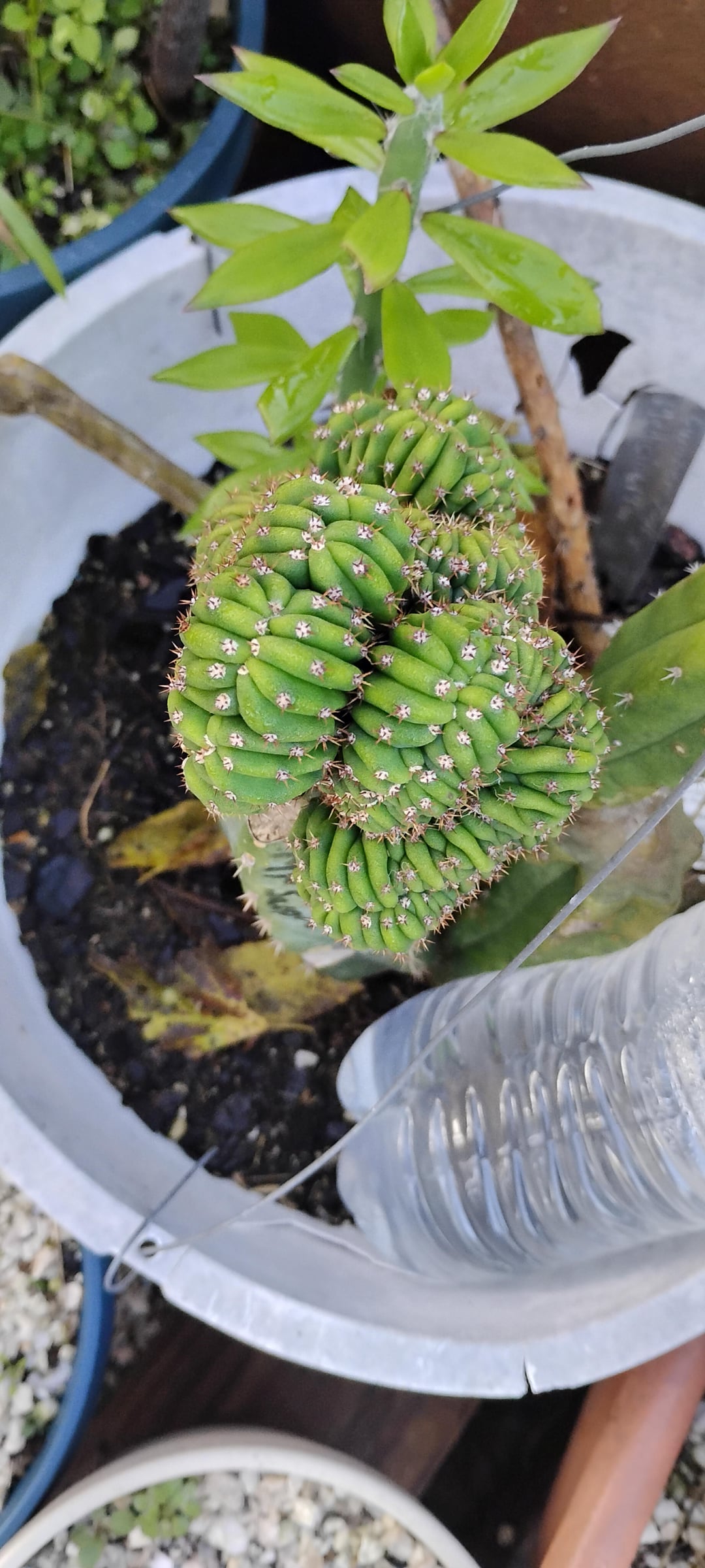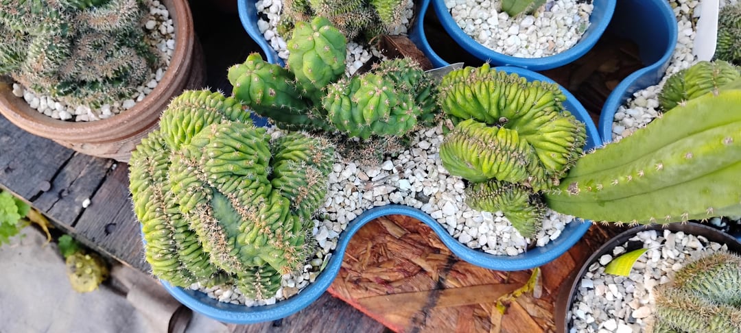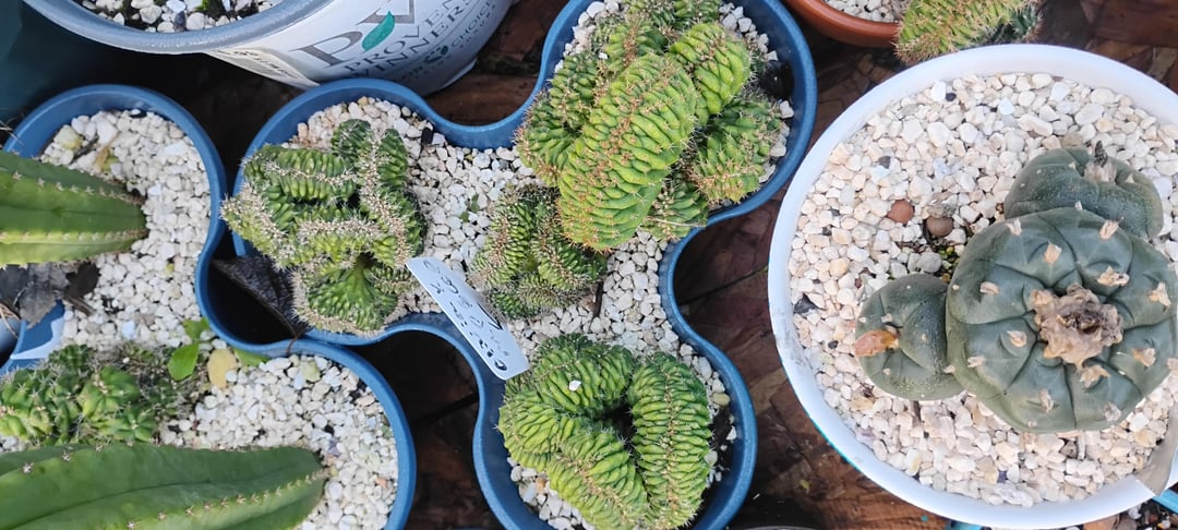Skip the copper fungicide and spray with lead? I see half a cactus standing, one laying down, and a 410 shell. I’ll give that a shot next time I have to deal with fungal issues. I like the blue pot setup.👍