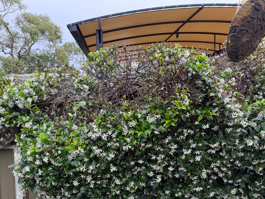 Last year our Jasmine started thinning out and showing its woody bits (oh la la). We were waiting until spring to see if it recovered but it doesn’t look like it’s doing a very good job. Any idea what may have caused it and how we can help it back to good health? Our neighbour thought it may be possums eating at it and we have seen a sneaky possum or two hanging out in it at night.