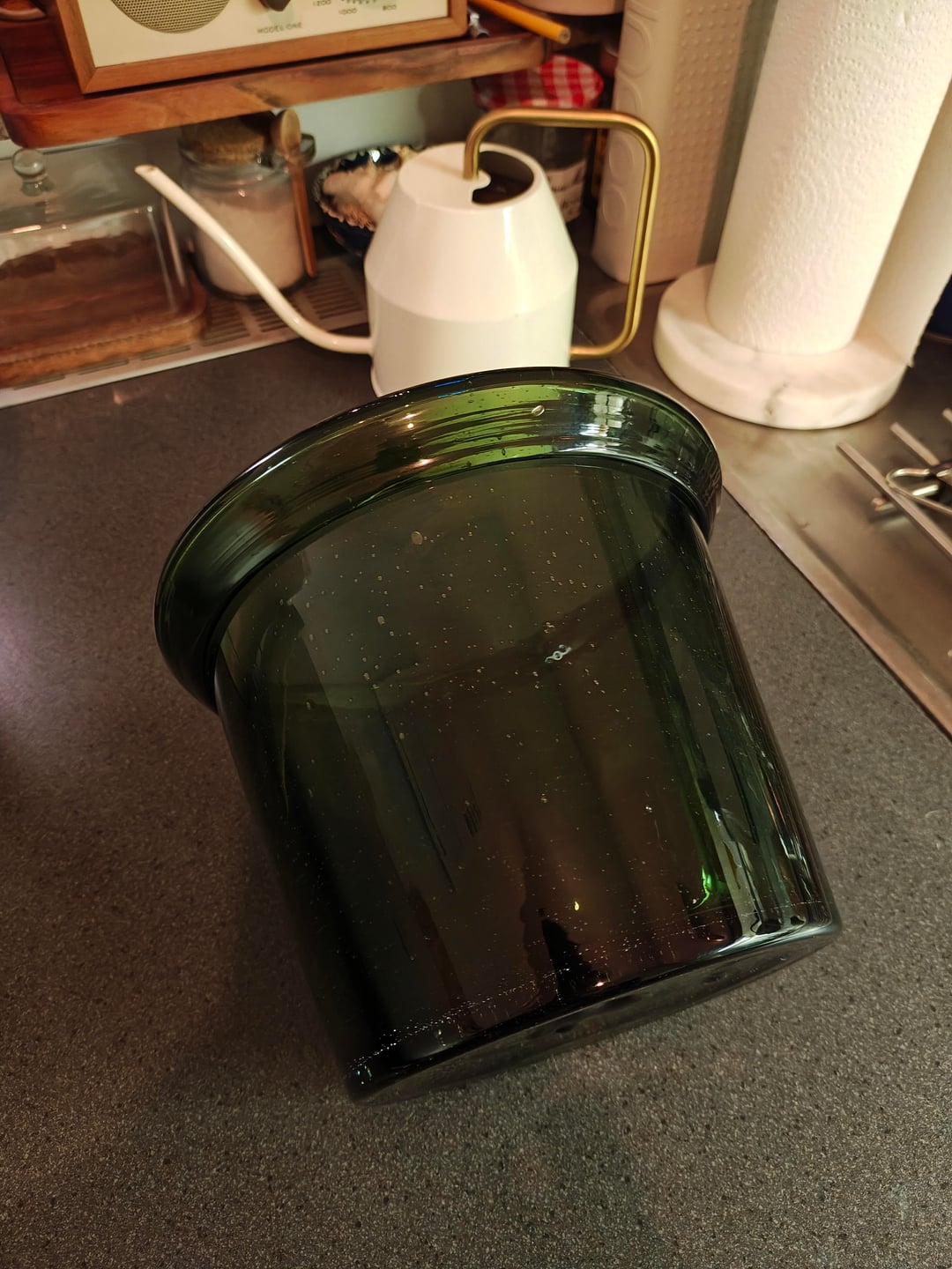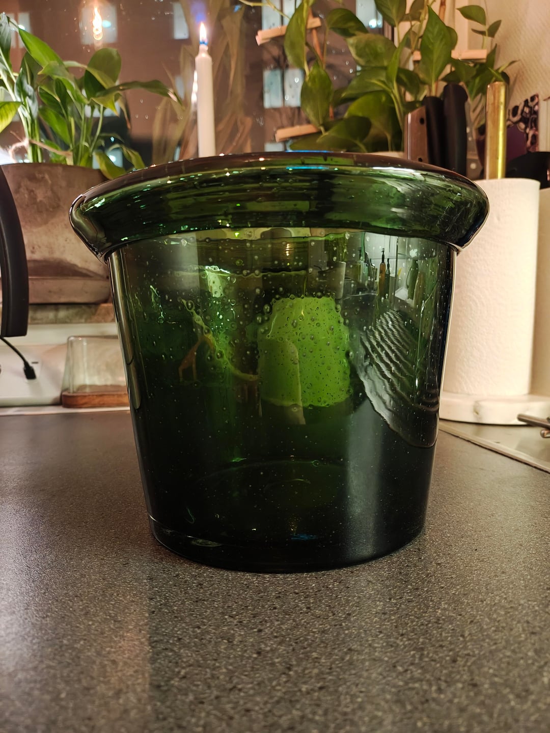 Ice and a wine bottle whilst you peruse for other equally delightful glass plant pots. Love that colour